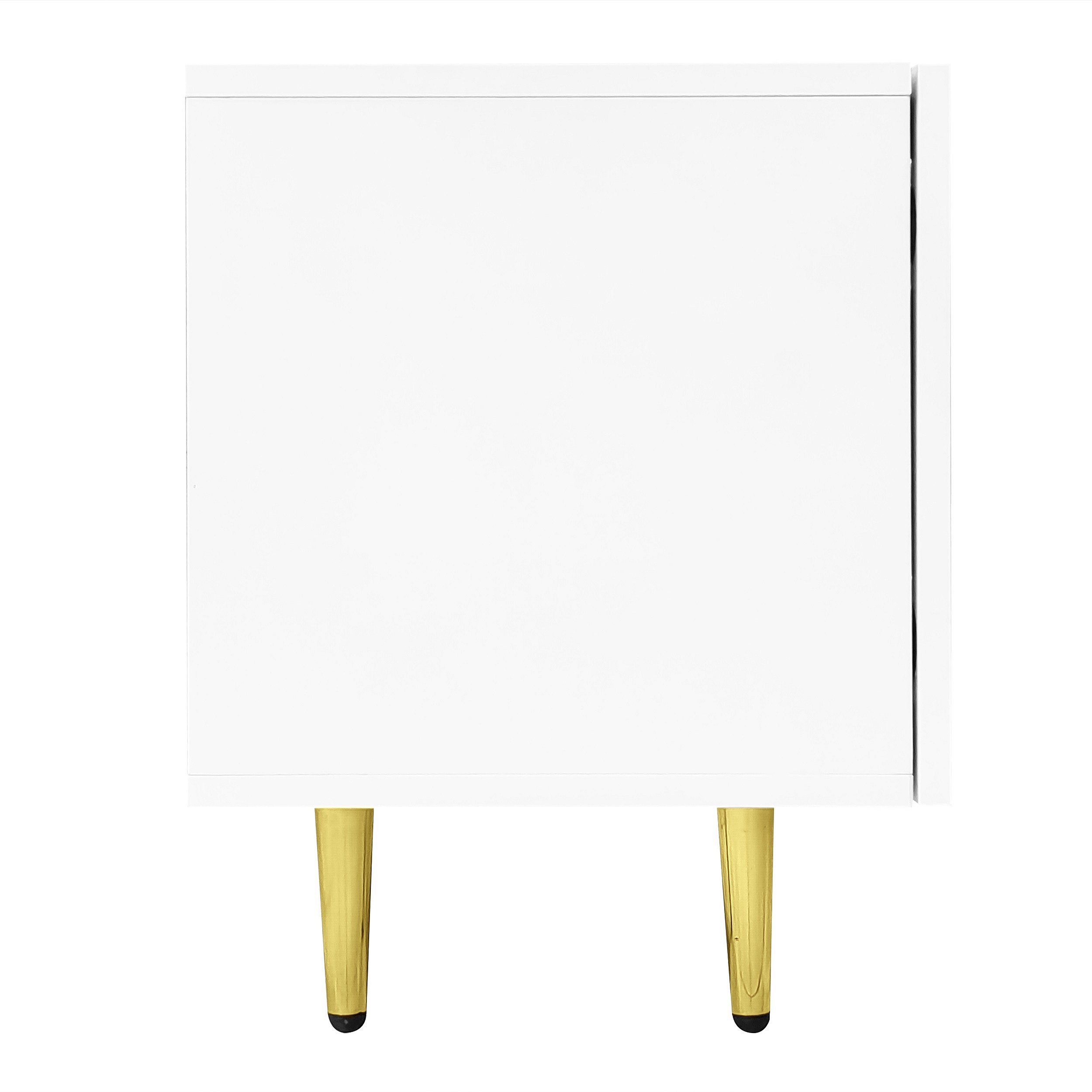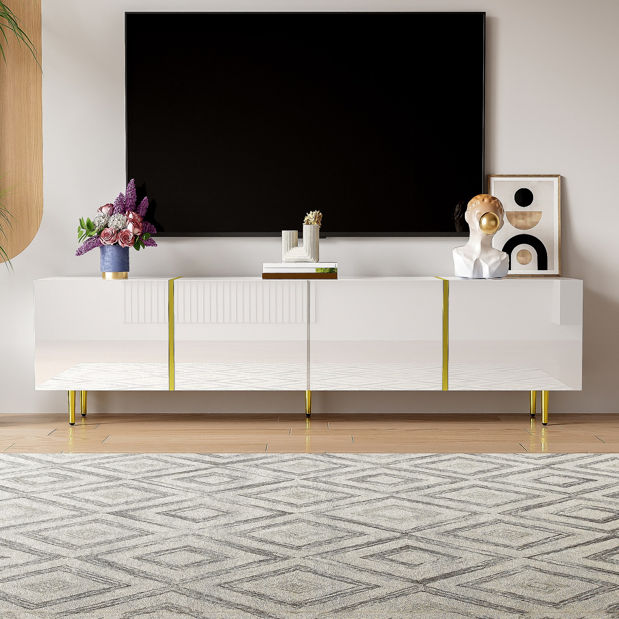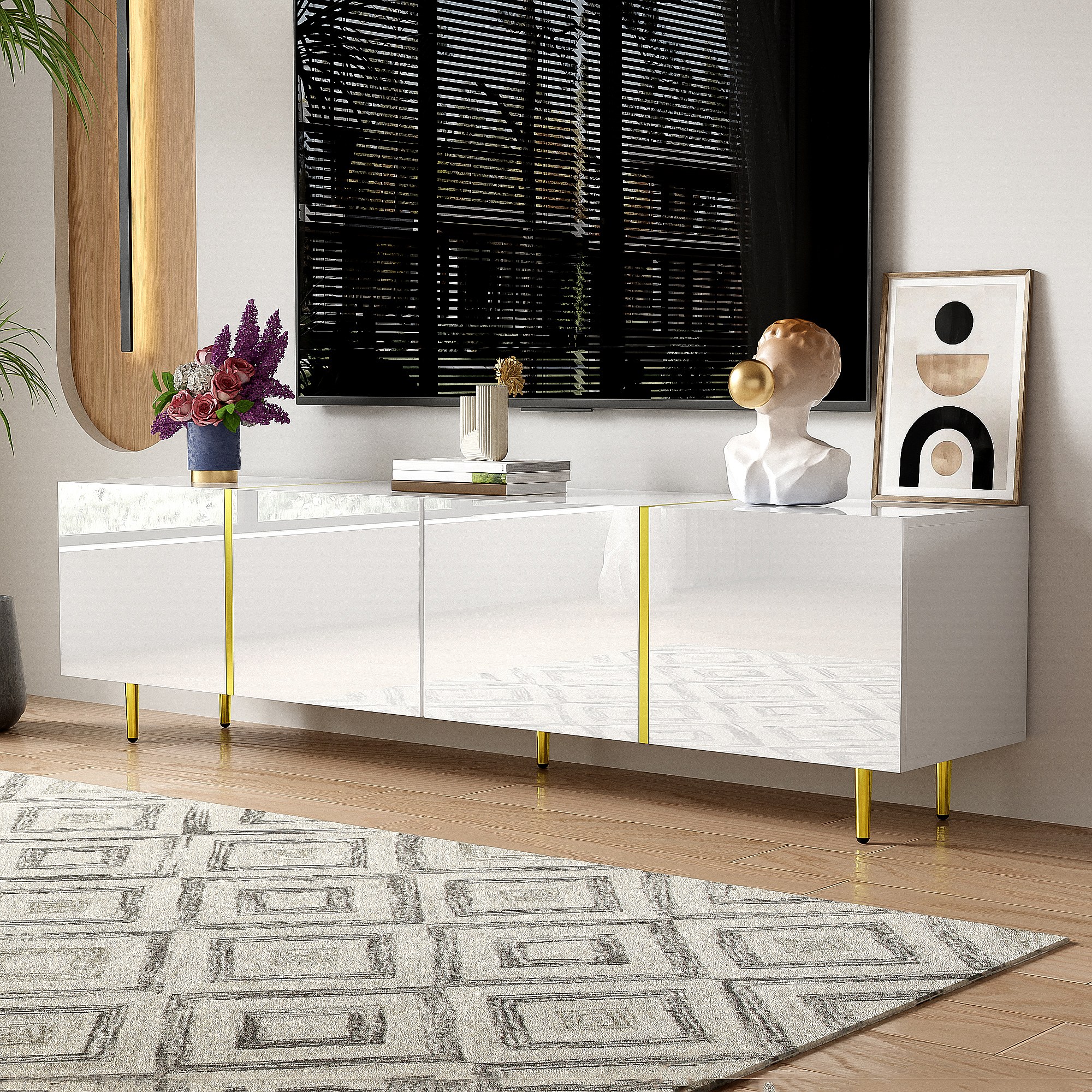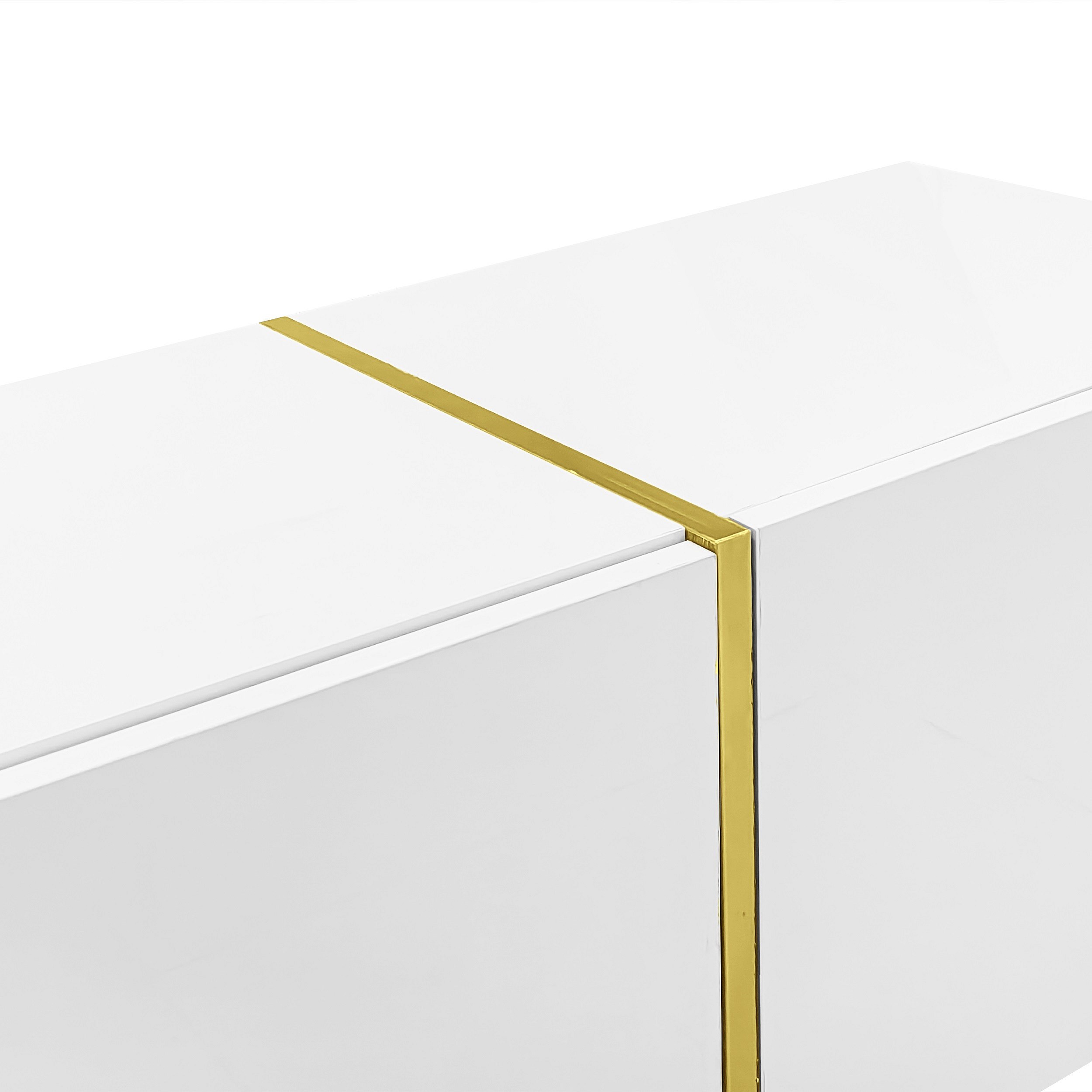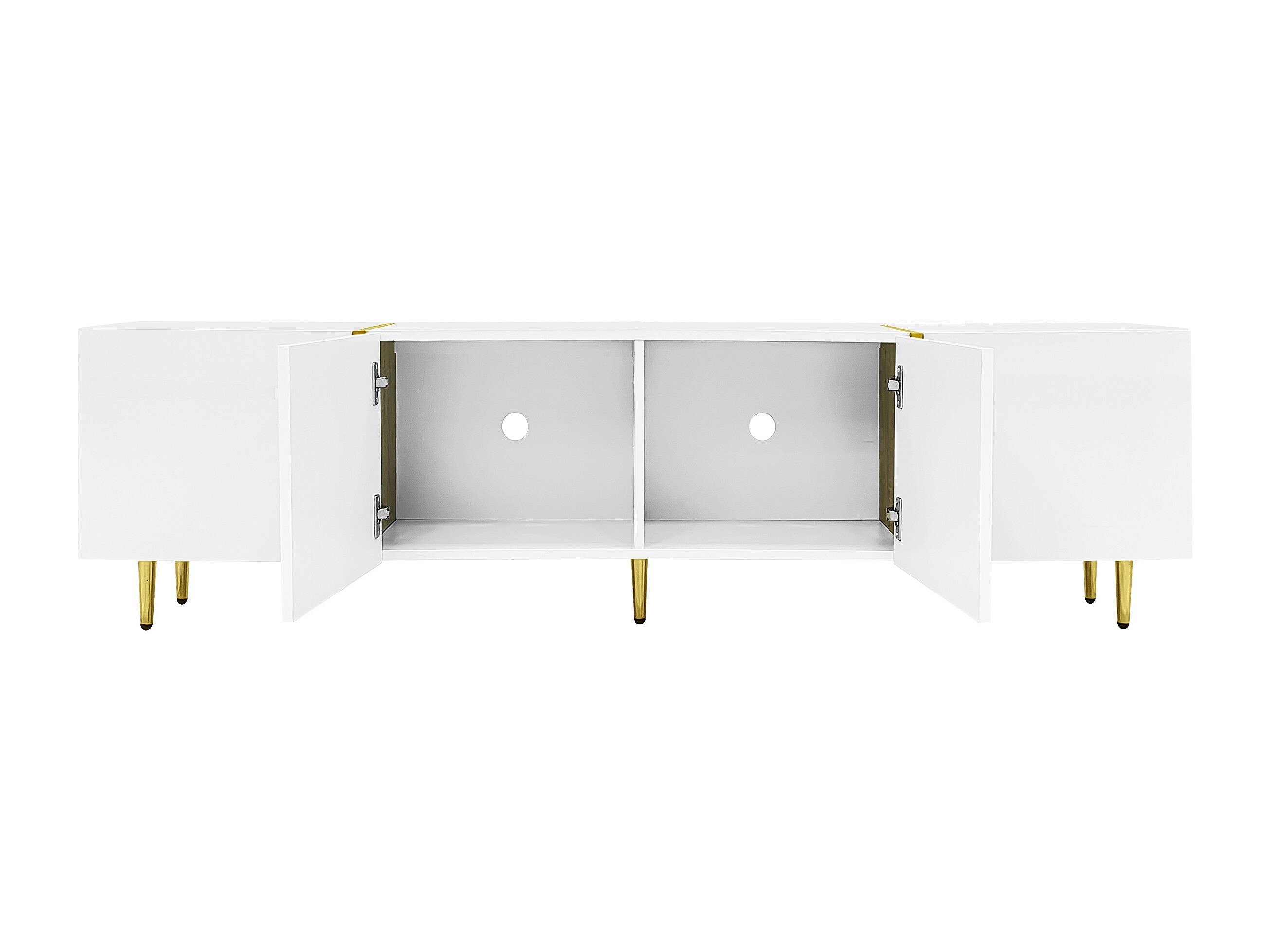 Mobile TV bianco con 4 ante lucide e gambe dorate - Ideale per soggiorno e ufficio