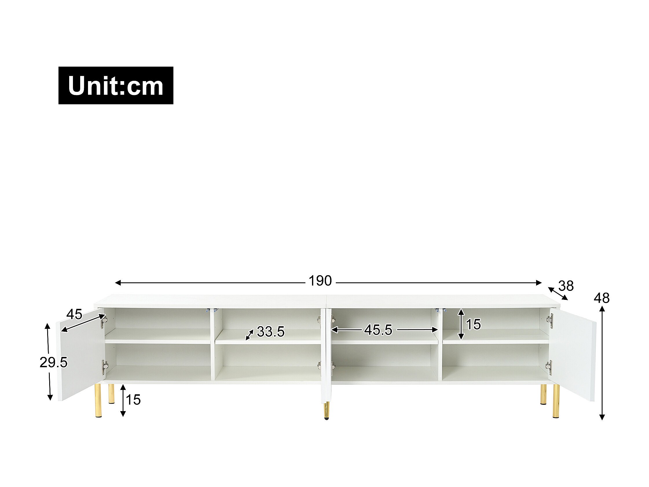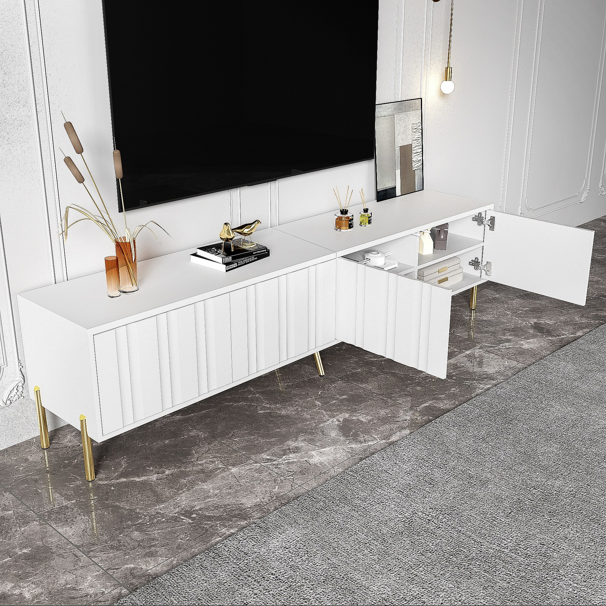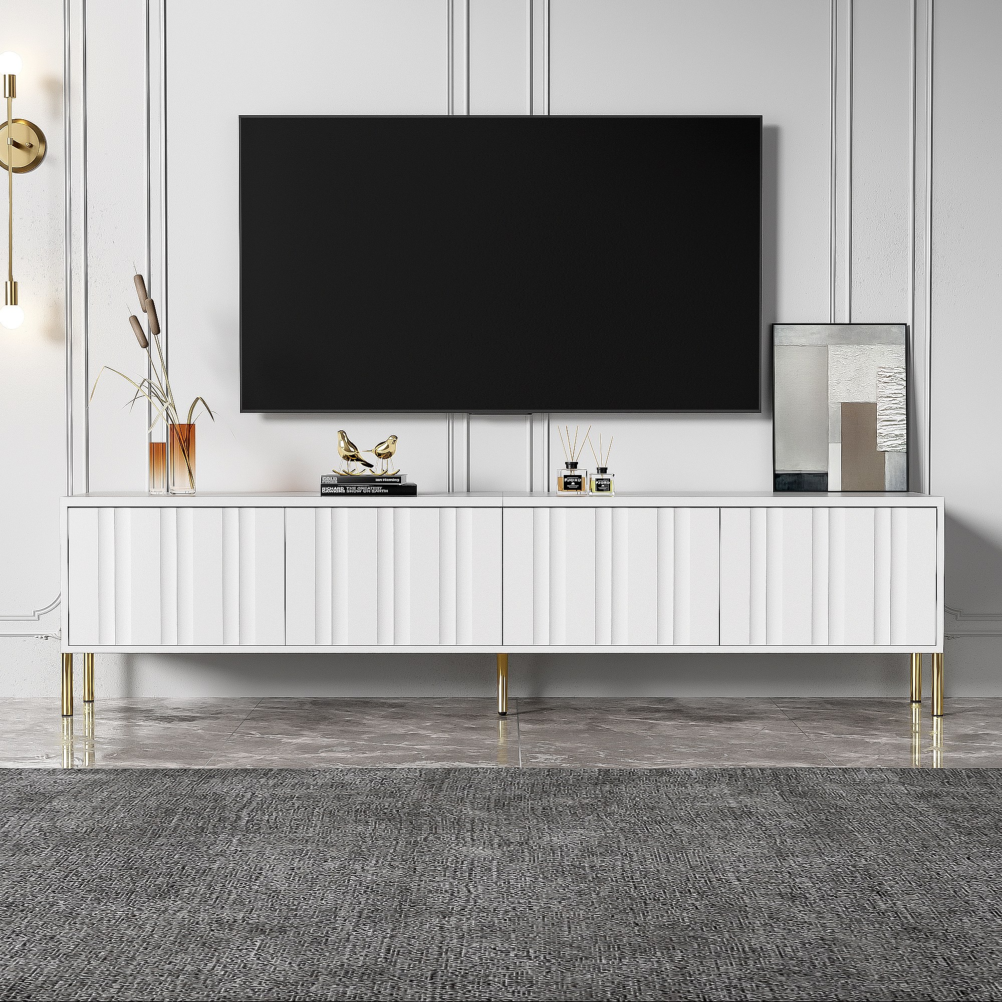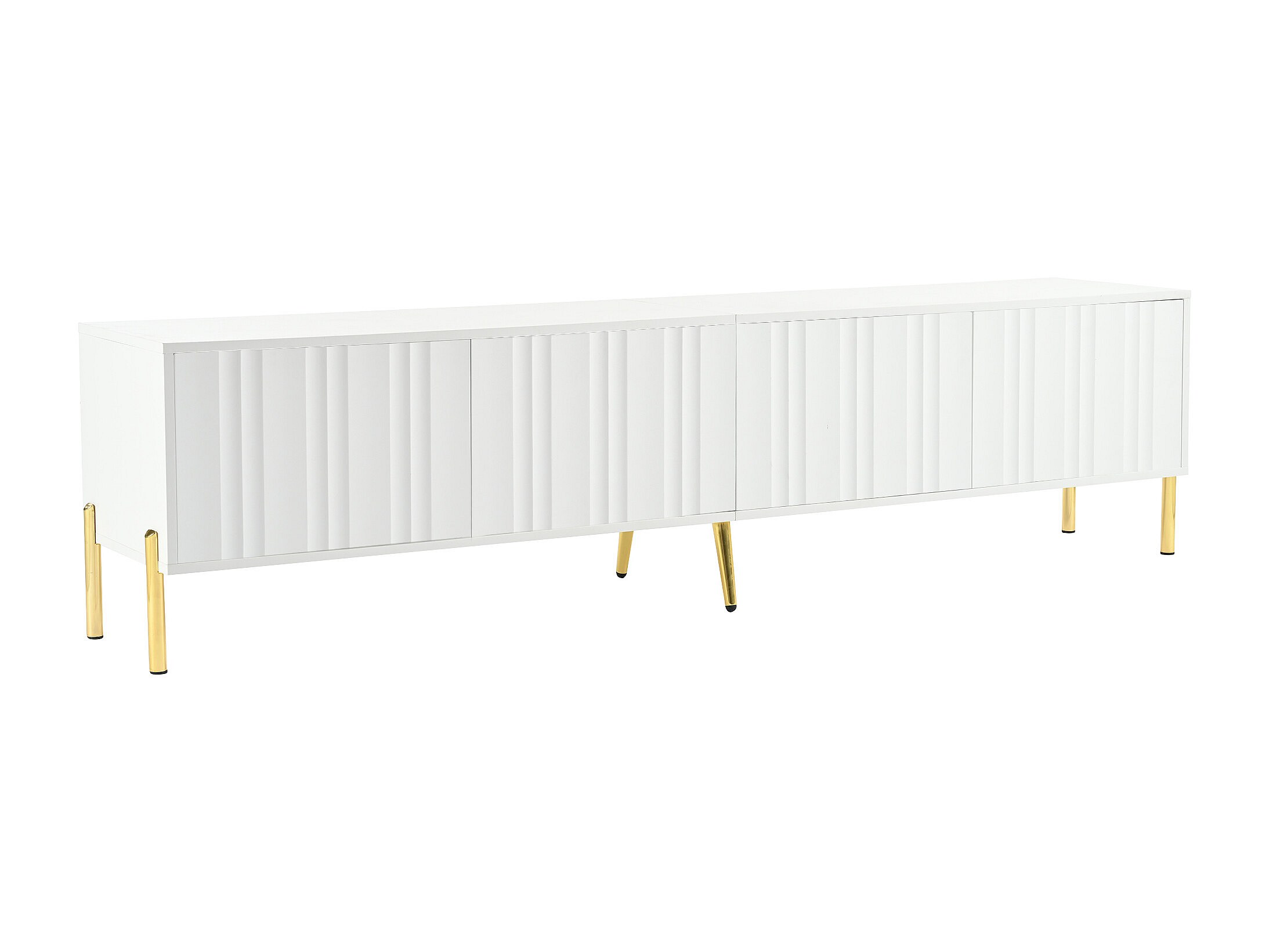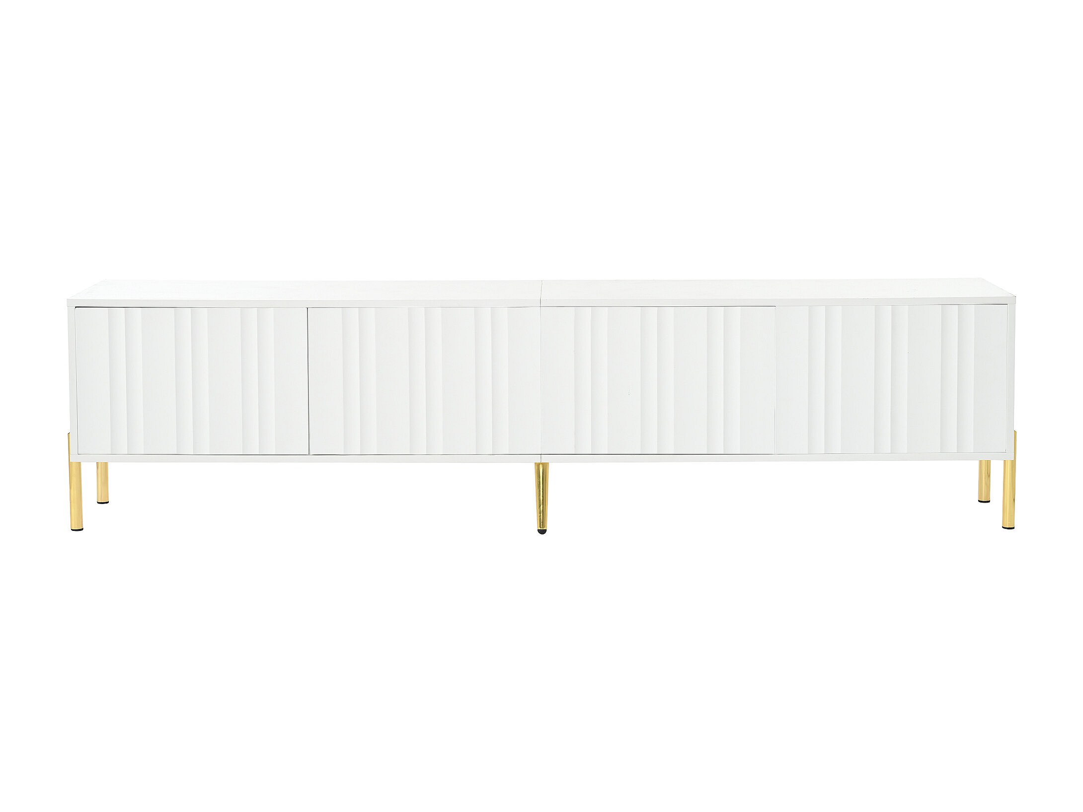 Mobile TV bianco con 4 ante scanalate e gambe dorate - Ideale per soggiorno e ufficio