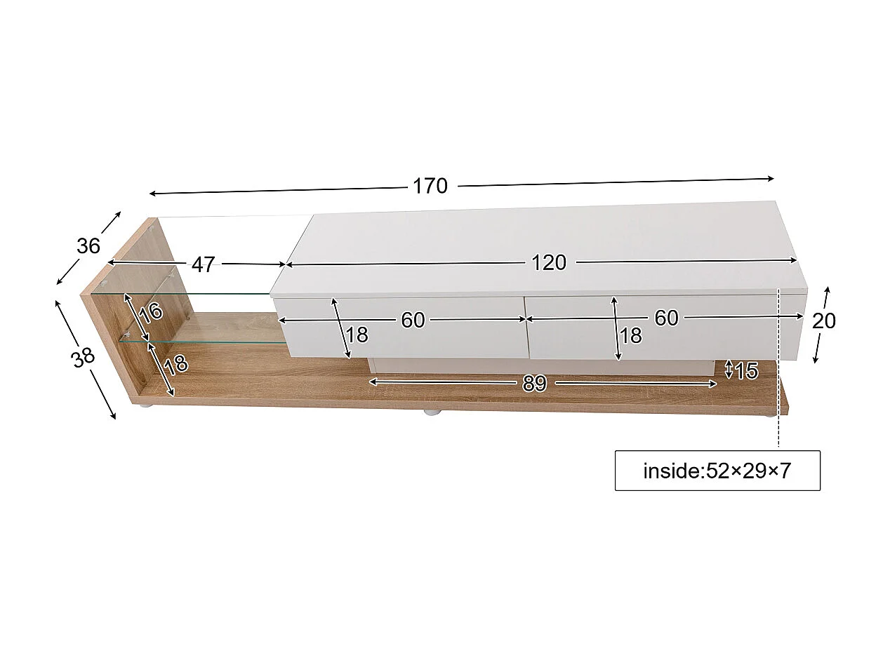Mobile TV bianco lucido e legno con illuminazione a LED. Combina lo stile rustico con il design moderno.