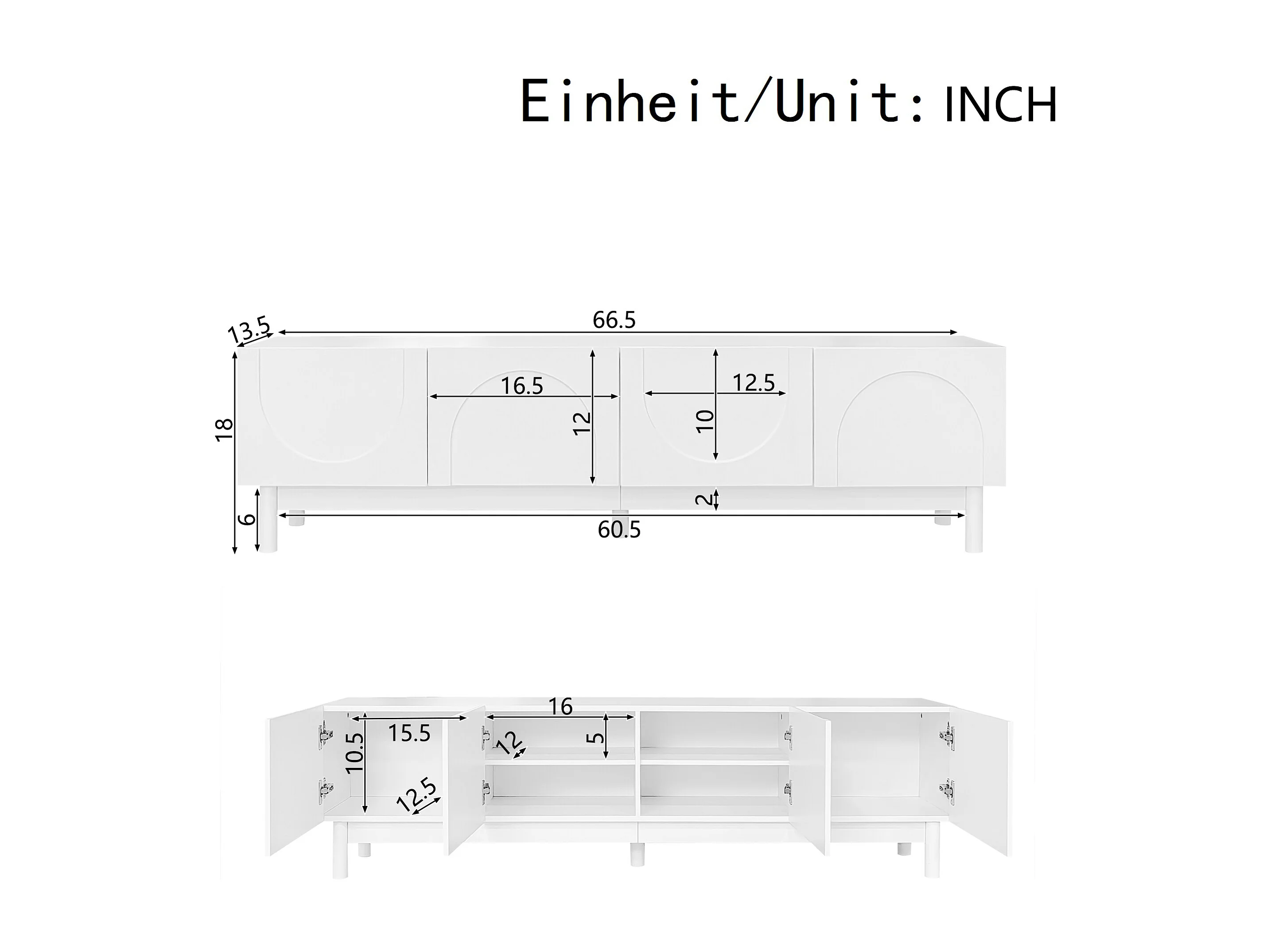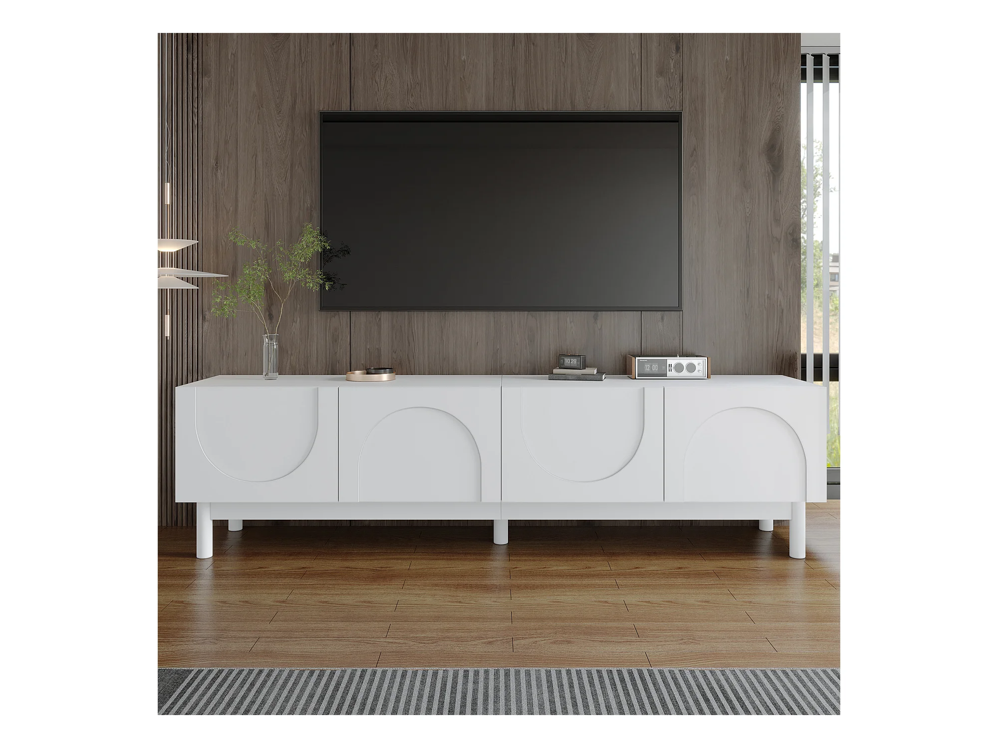 Mobile TV bianco - Mobile TV a 4 ante con gambe in legno massello - design senza maniglie