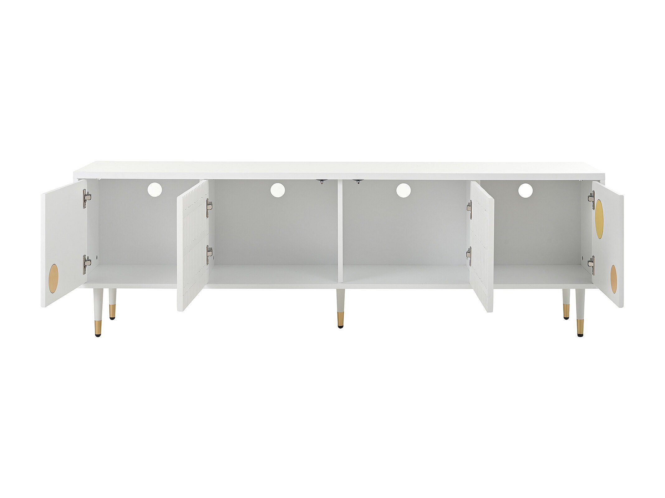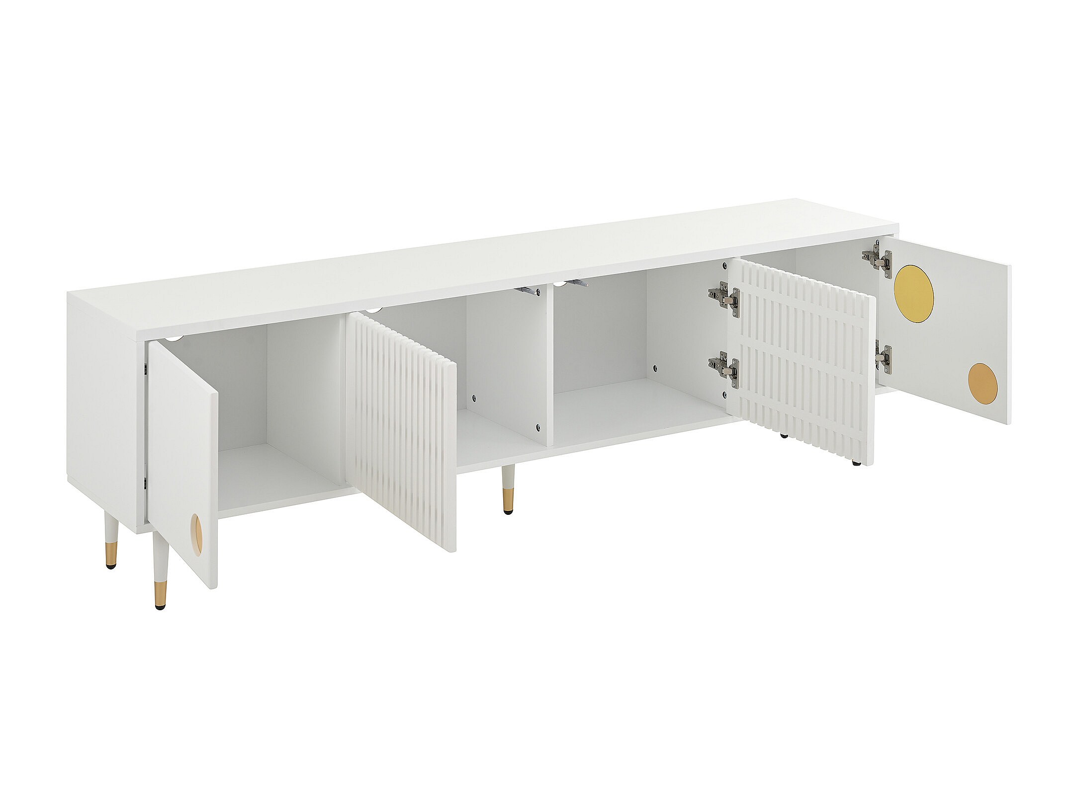Mobile TV bianco - Mobile TV a 4 ante con struttura a traliccio - Dettagli dorati e piedini regolabili