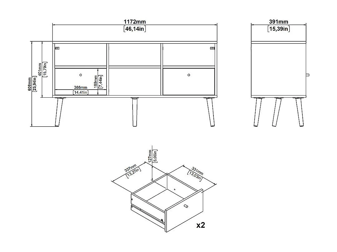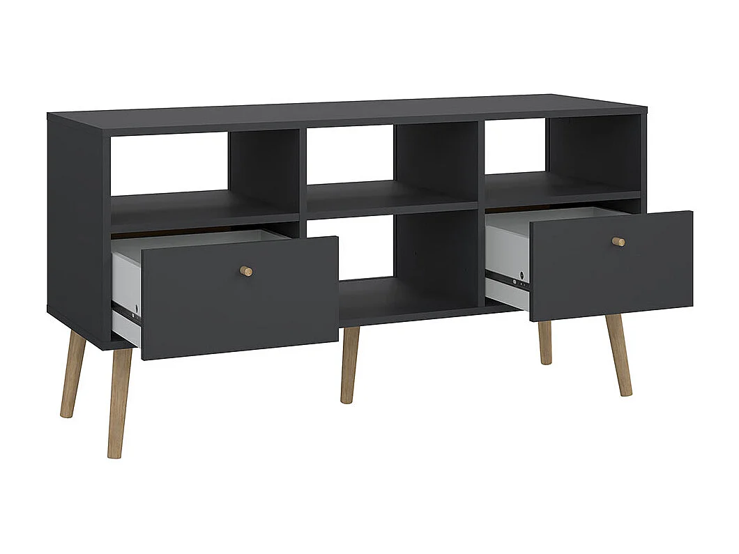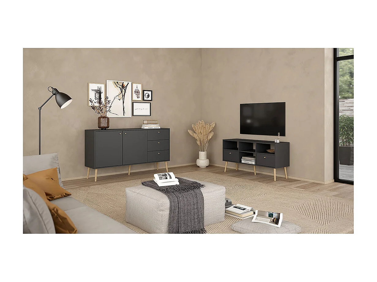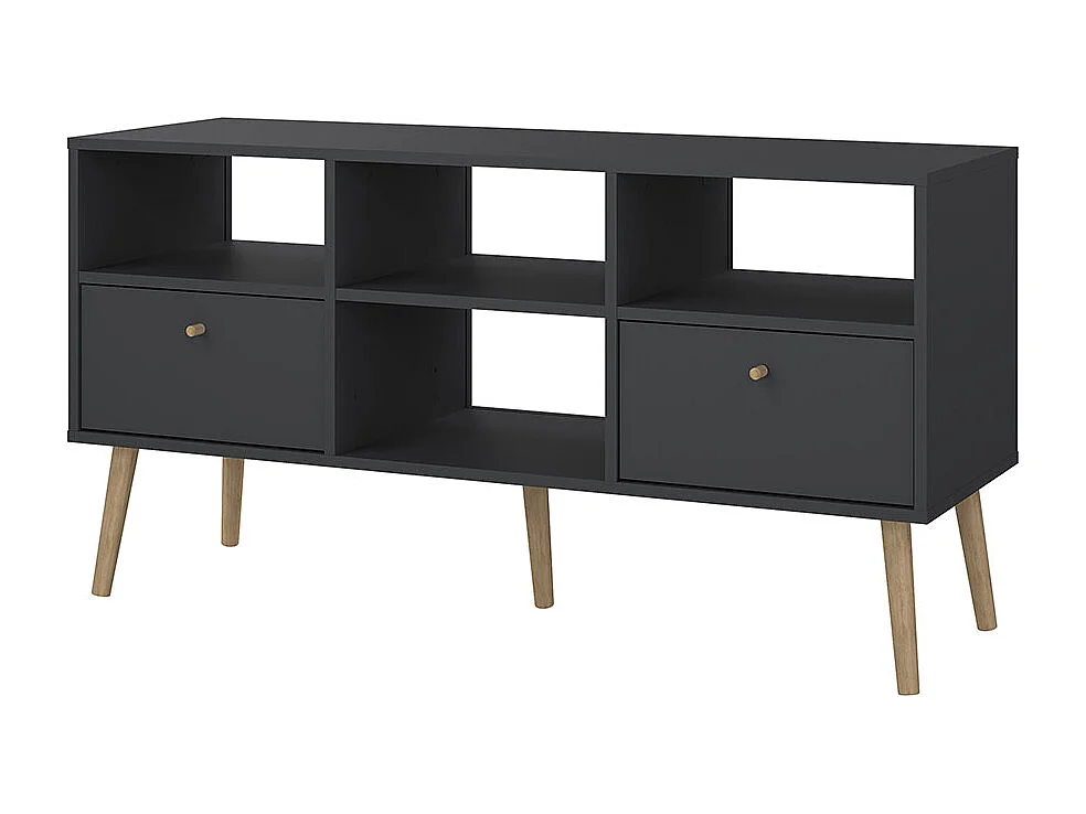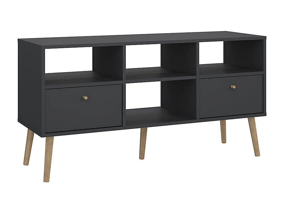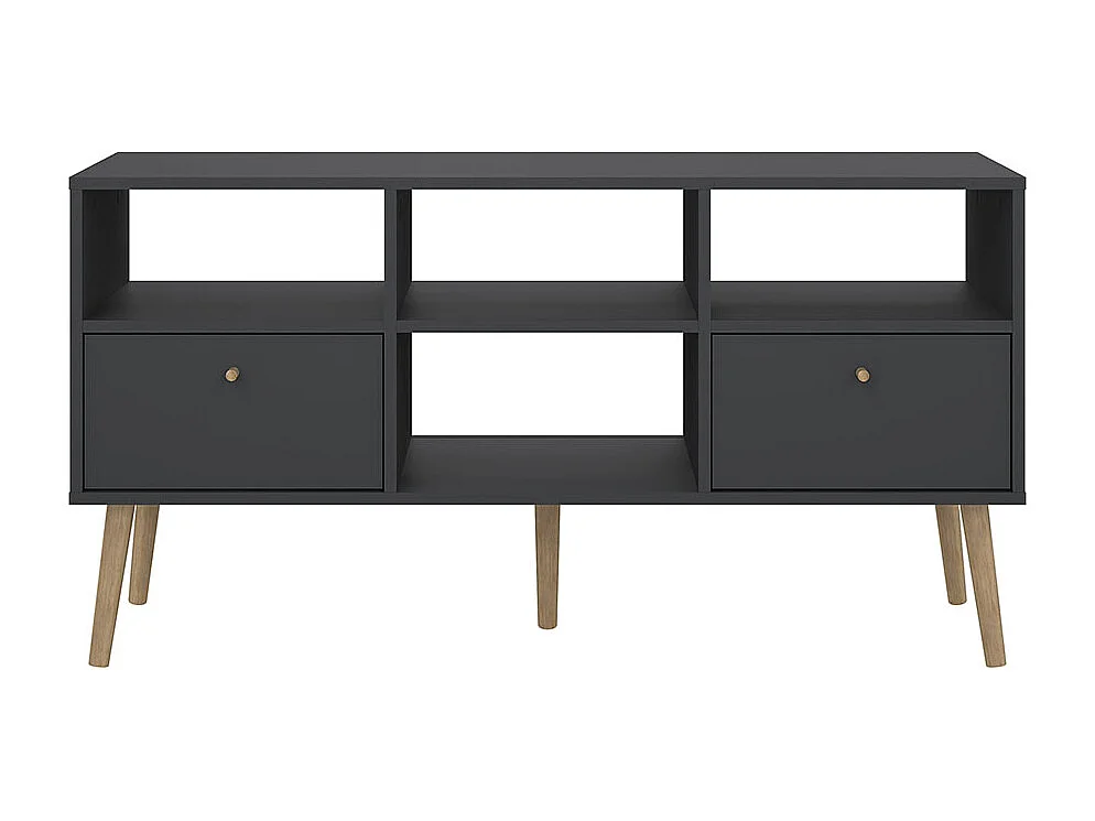 Mobile TV Bodo 2 cassetti, 4 ripiani grigio opaco.