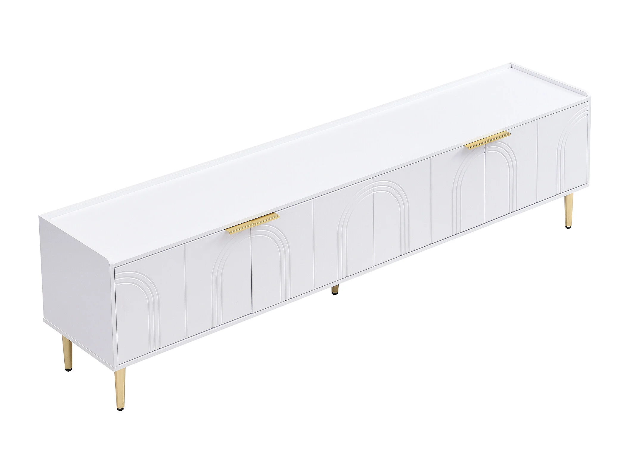 Mobile TV con 4 ante texturizzate, gambe dorate - Legno - Bianco
