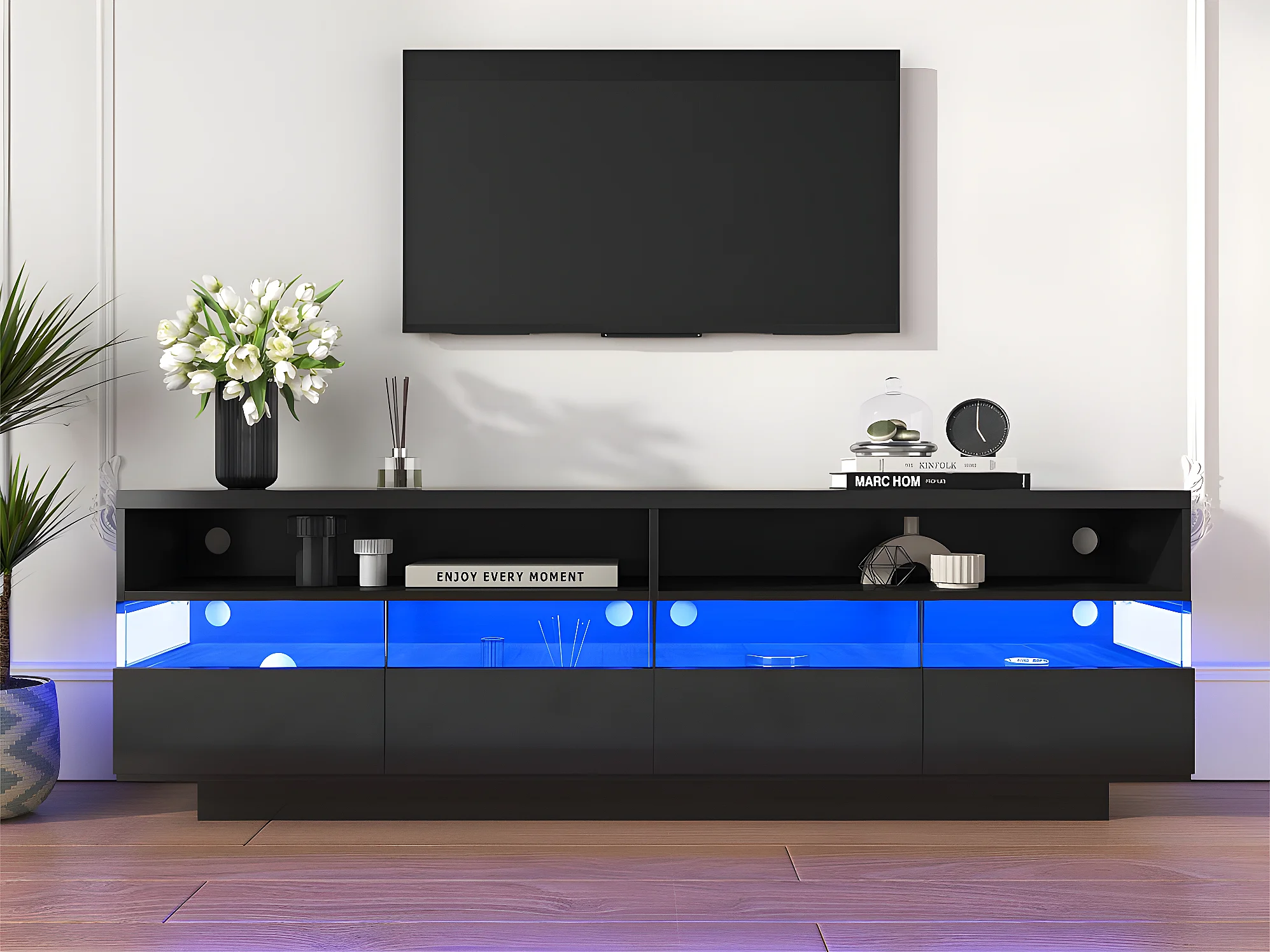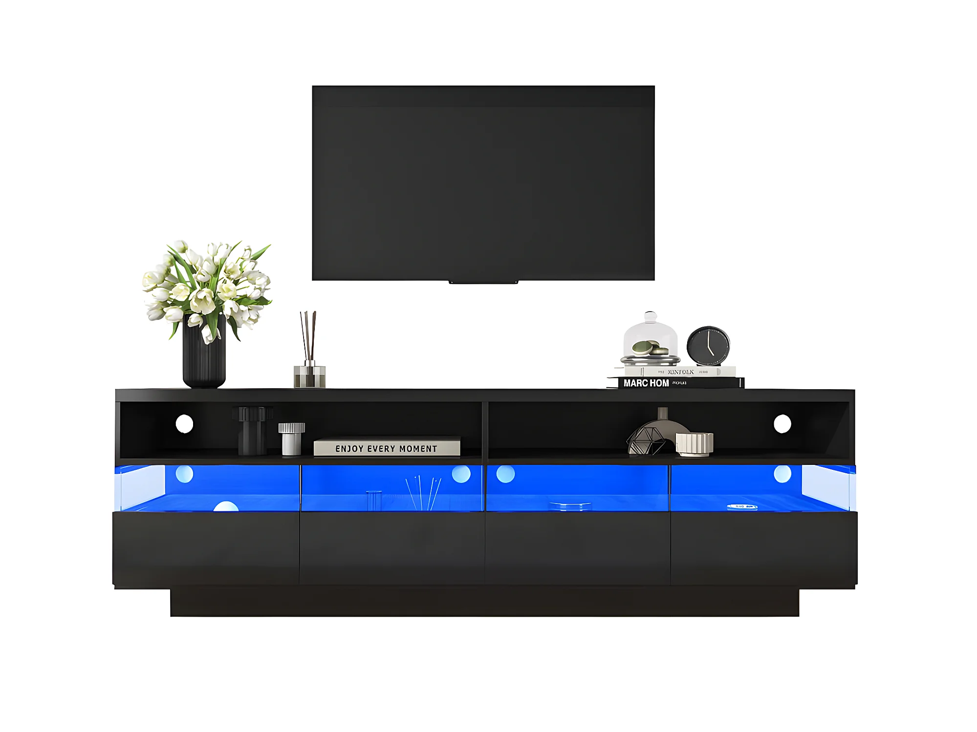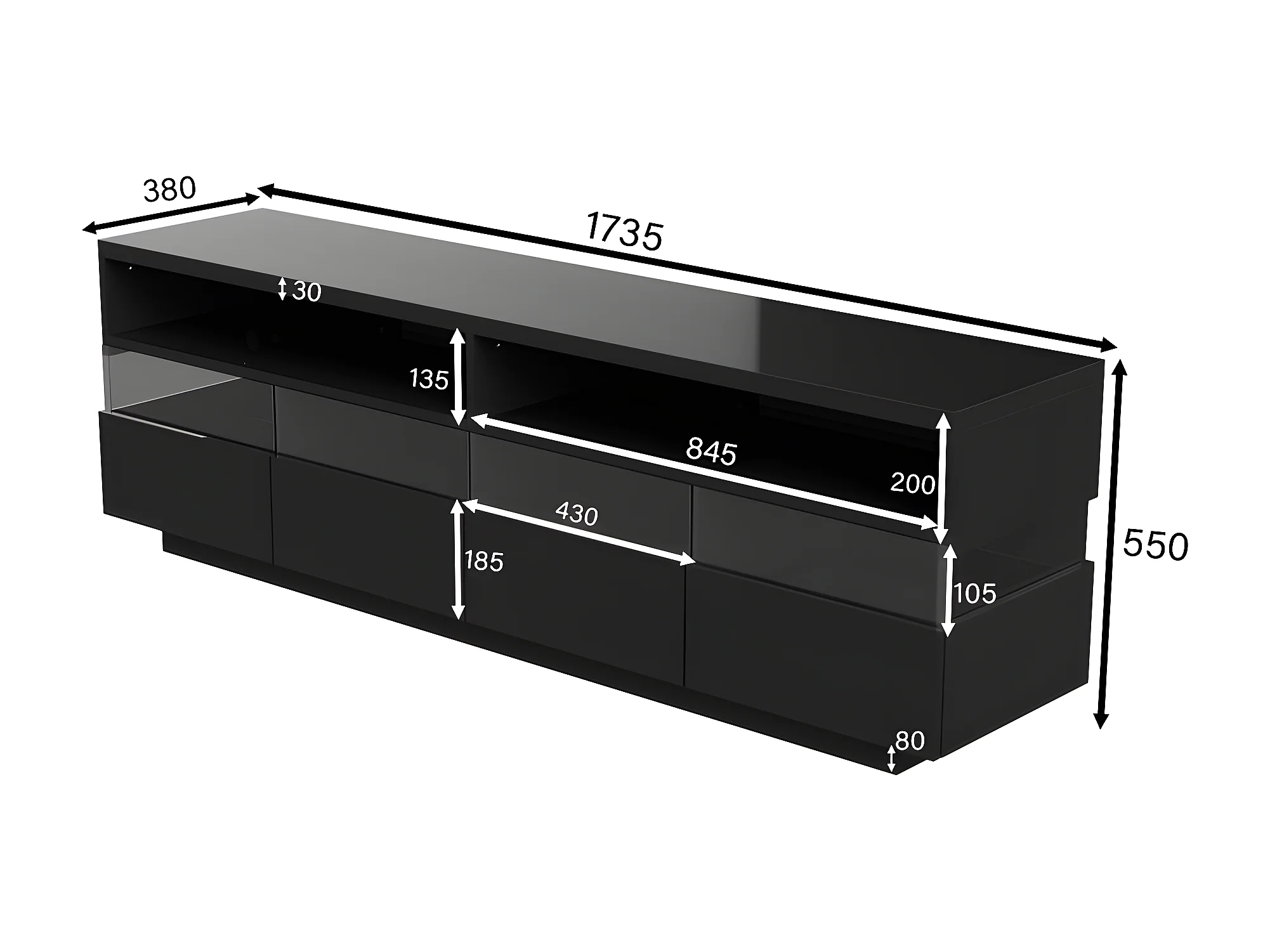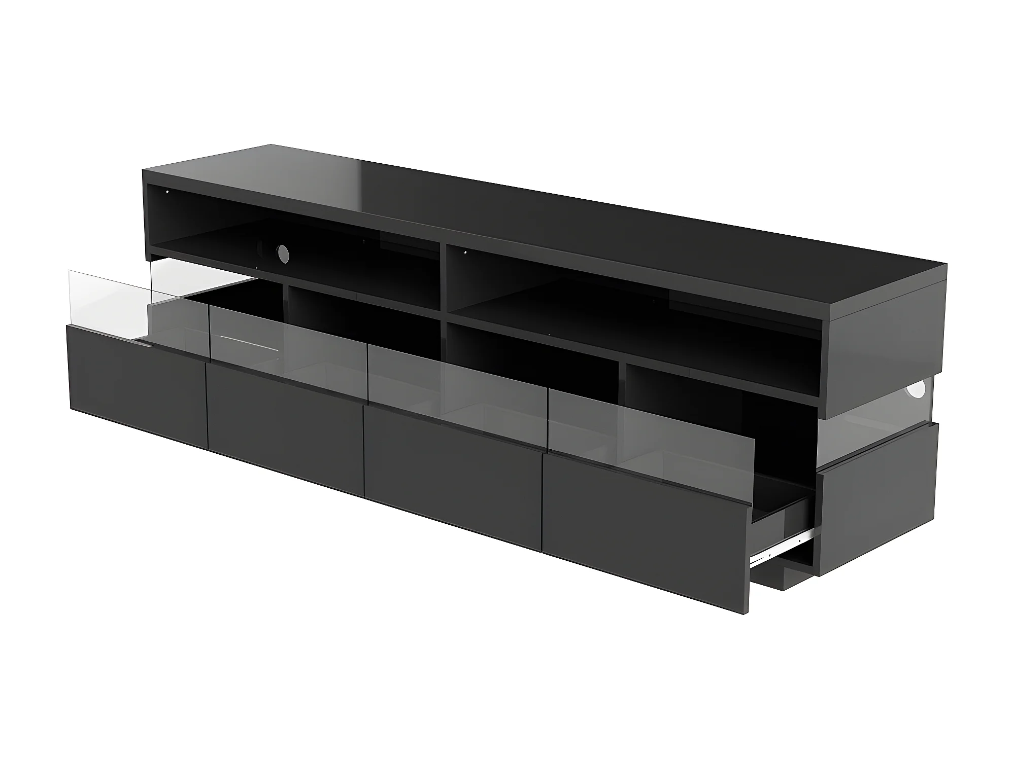 Mobile TV con LED - 2 vani aperti e 4 cassetti grandi - stile moderno - Nero