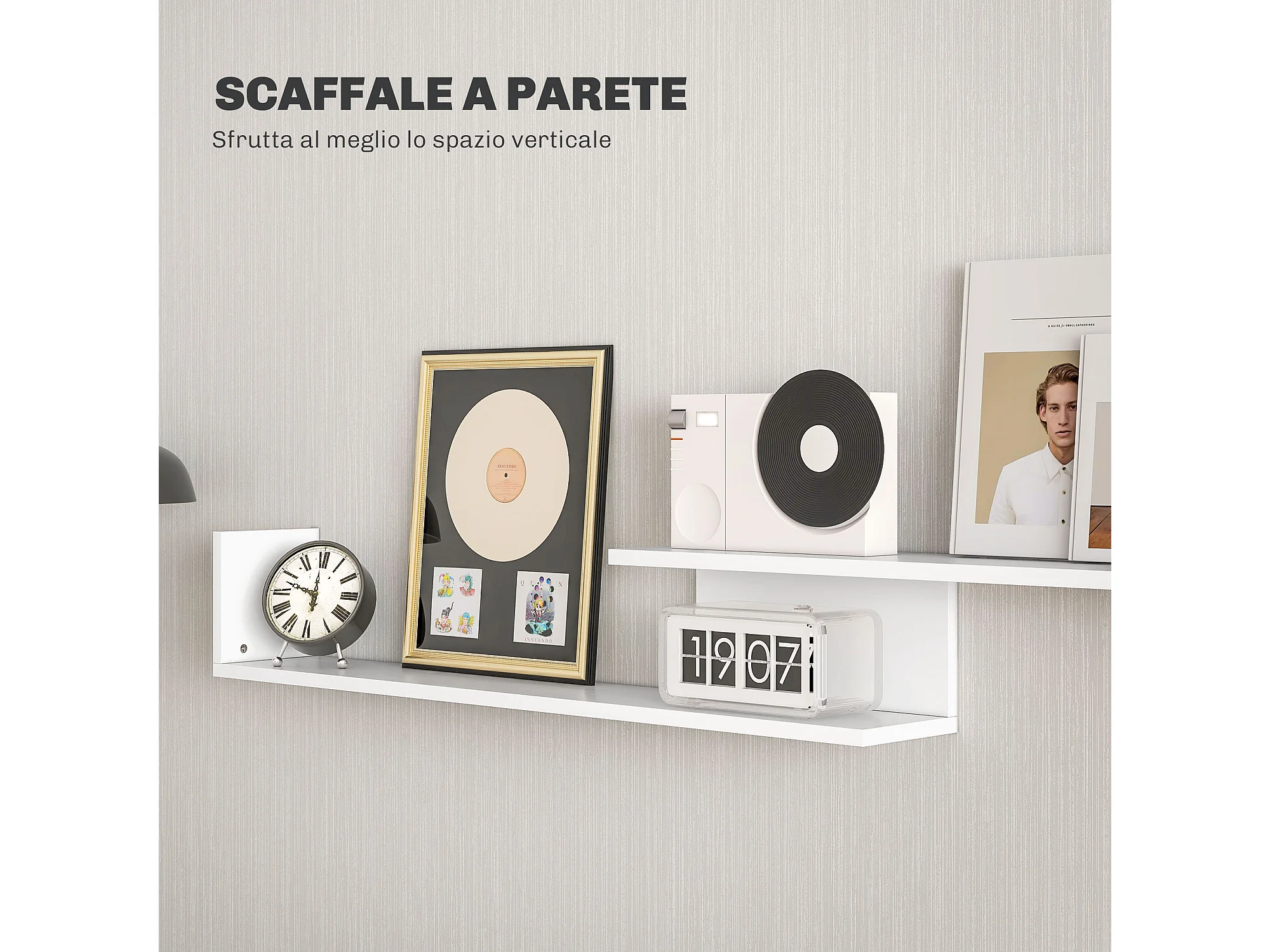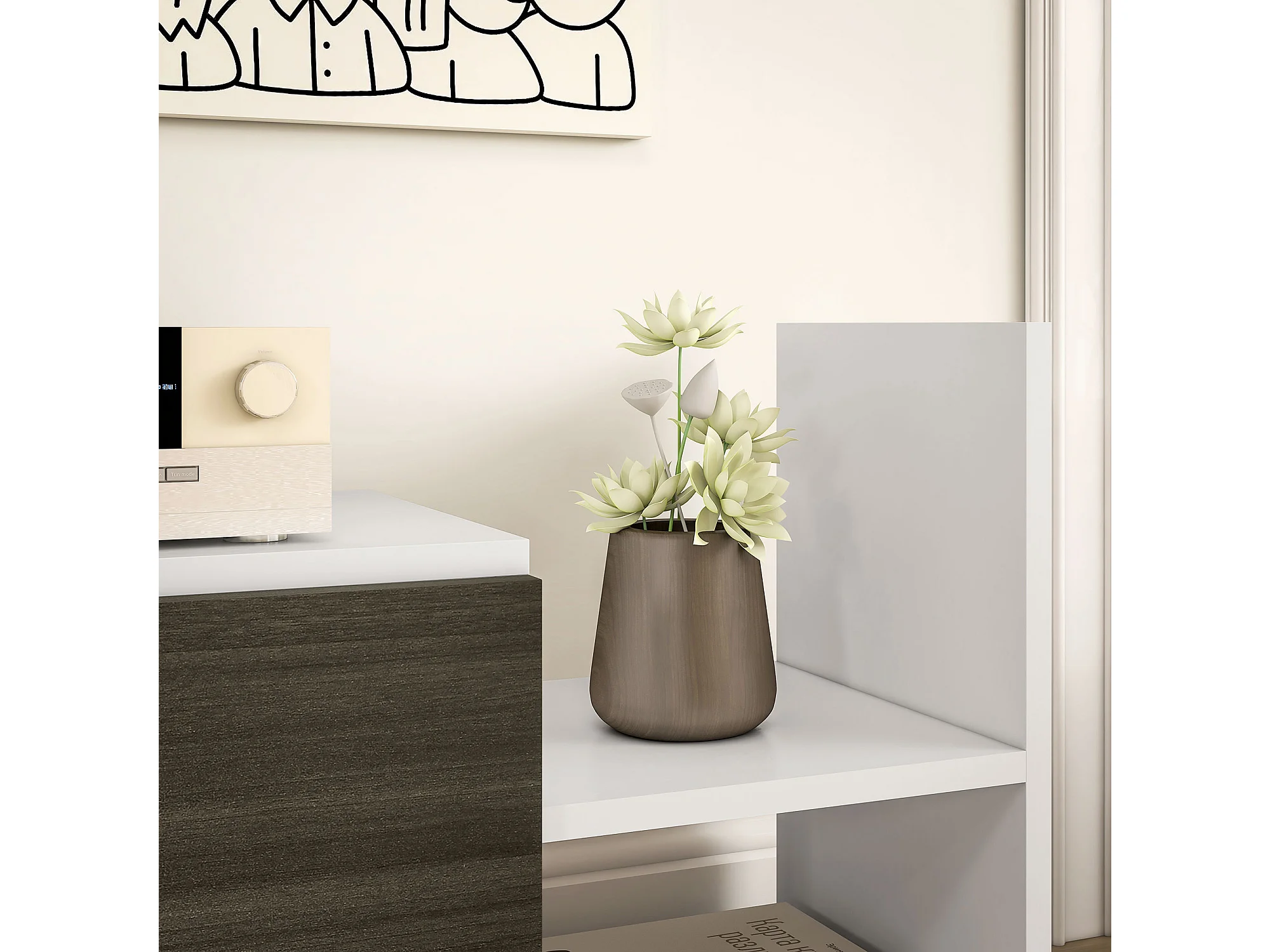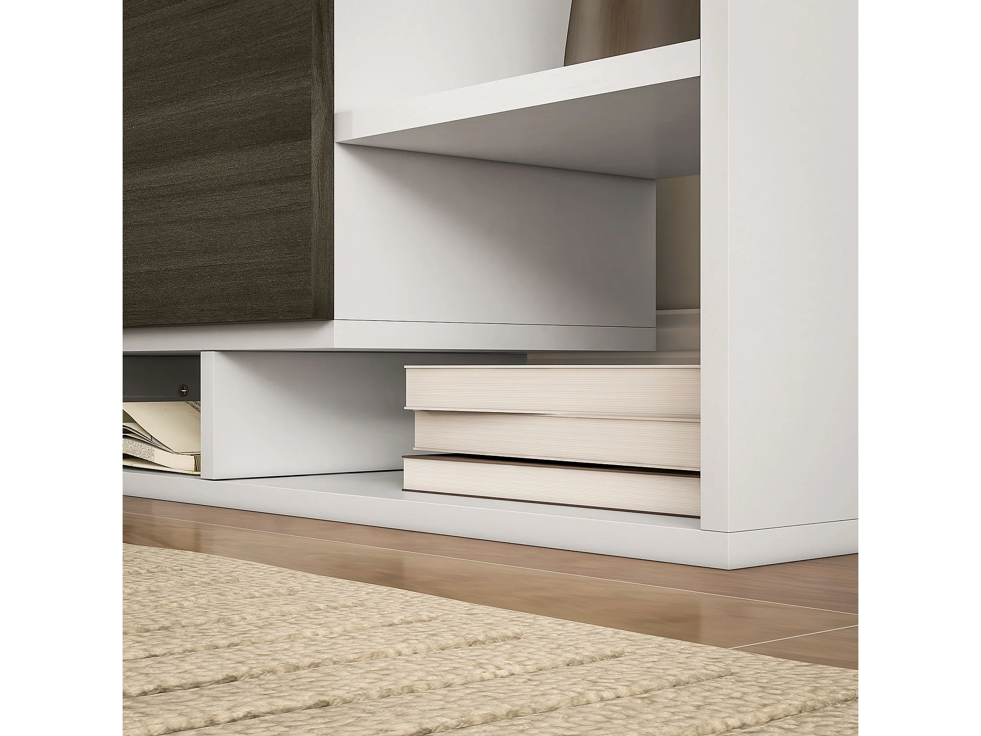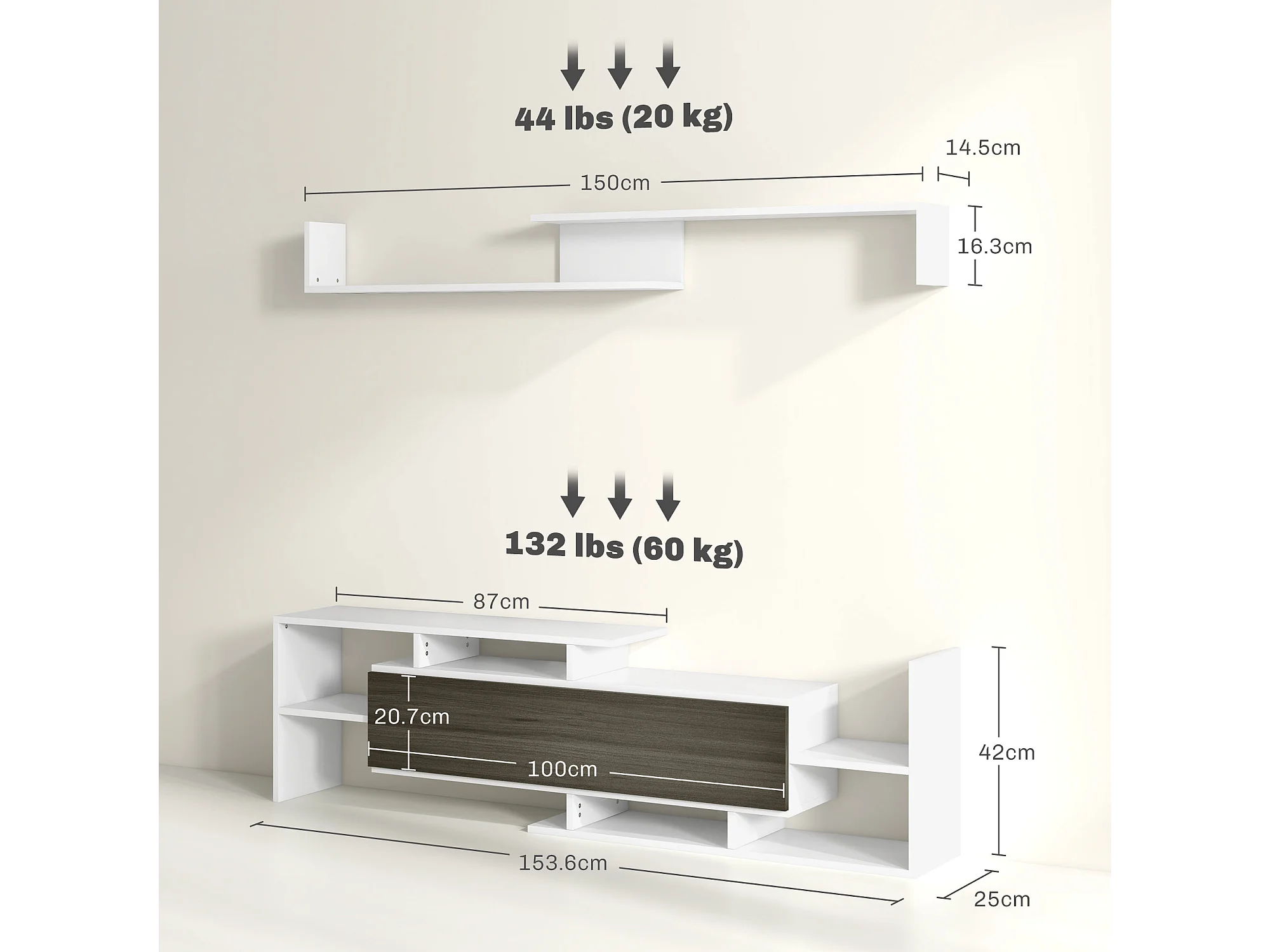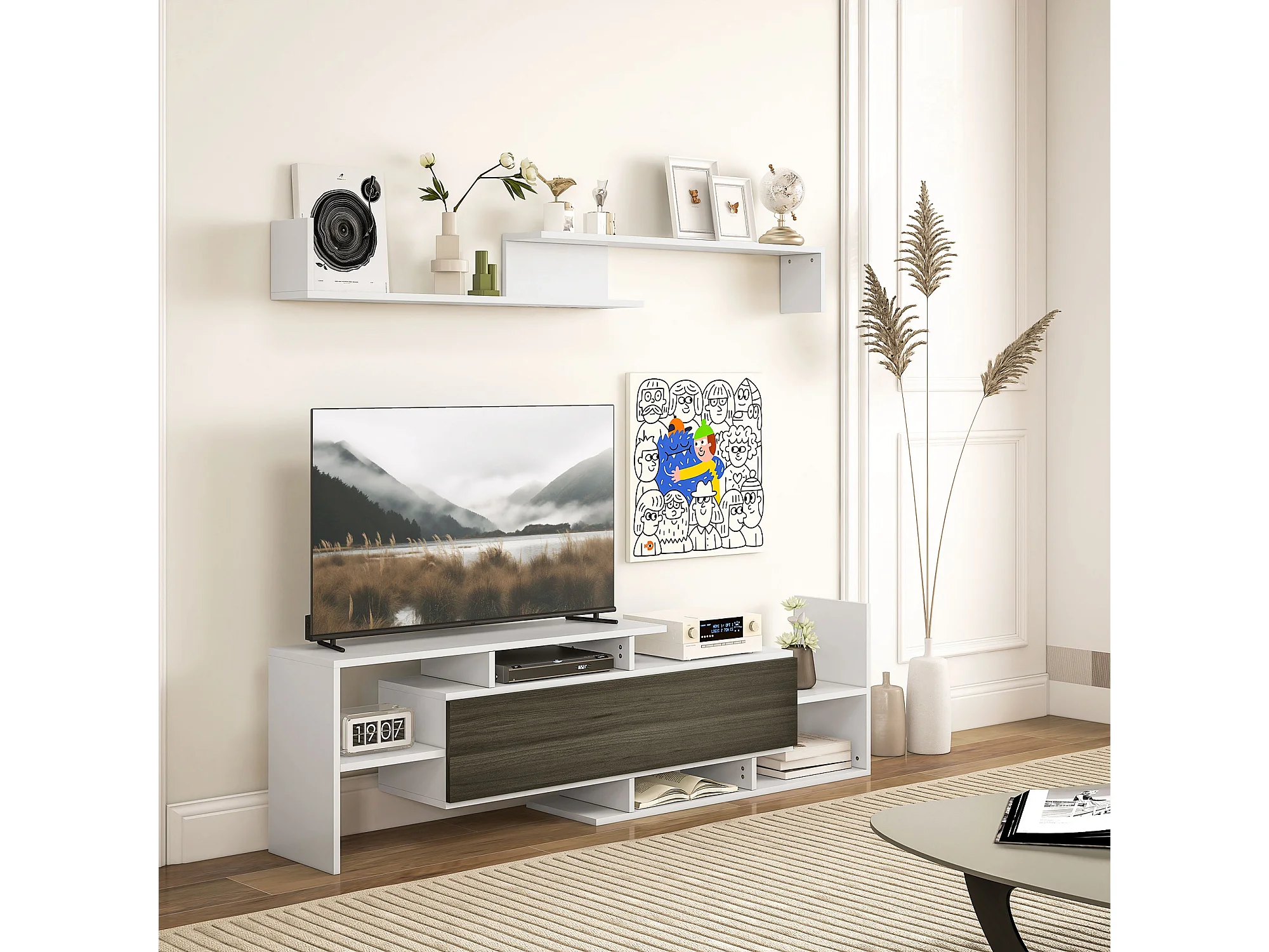 Mobile tv con mensola a muro, ripiani aperti e armadietto in legno