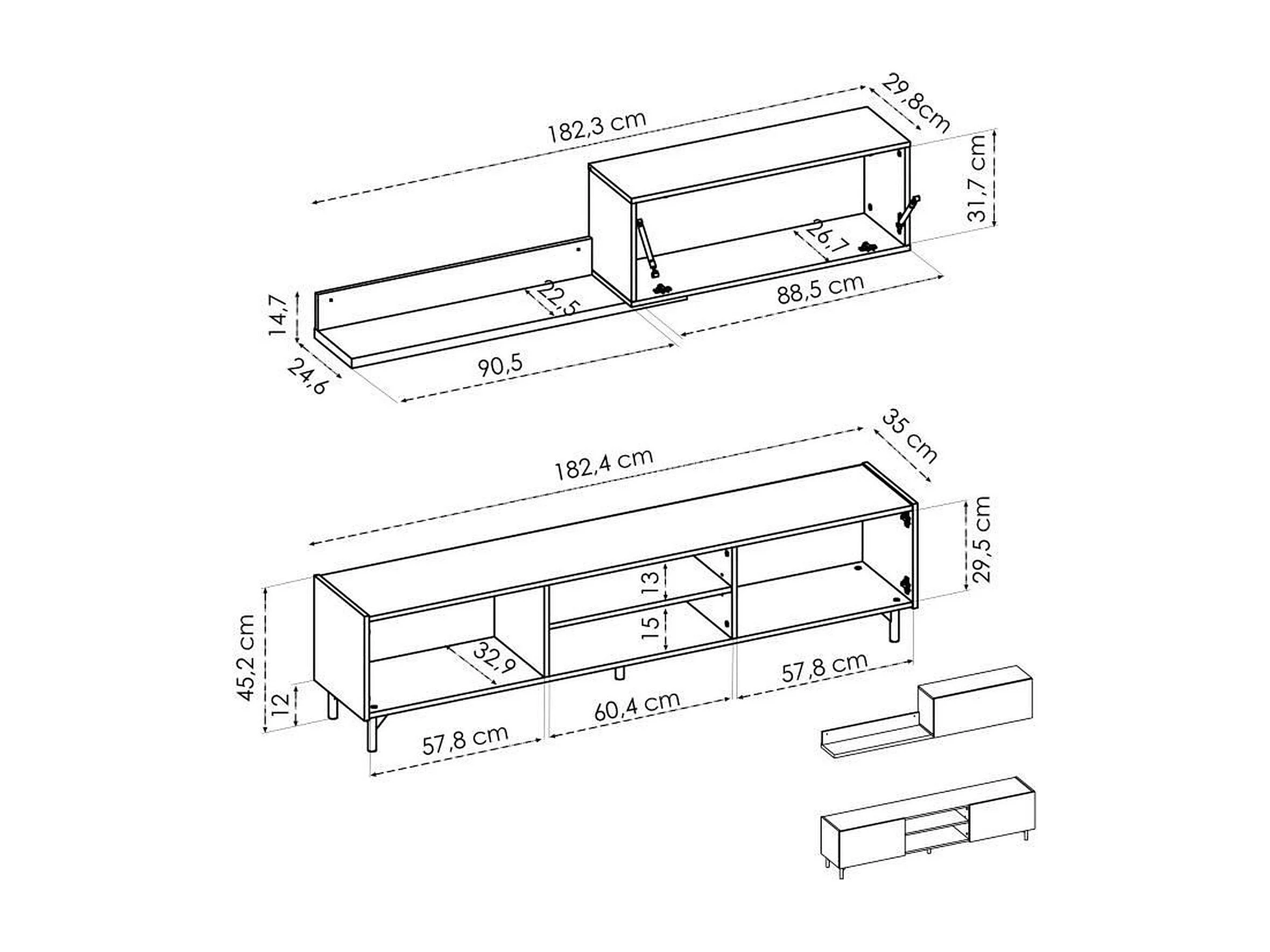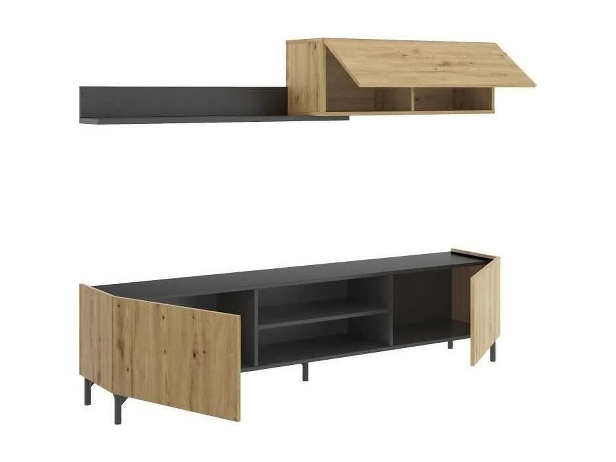 Mobile TV con mensola a muro Rovere Artisan e Grafite 180 x 35