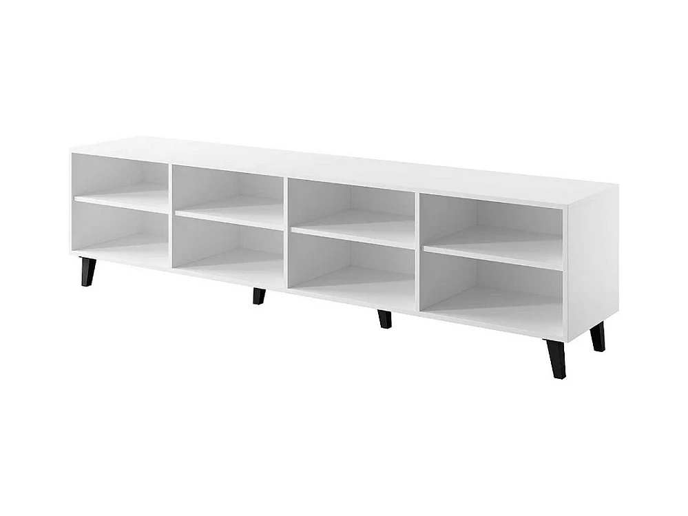Porta TV di design 200 cm bianco opaco con gambe in metallo nero Ula