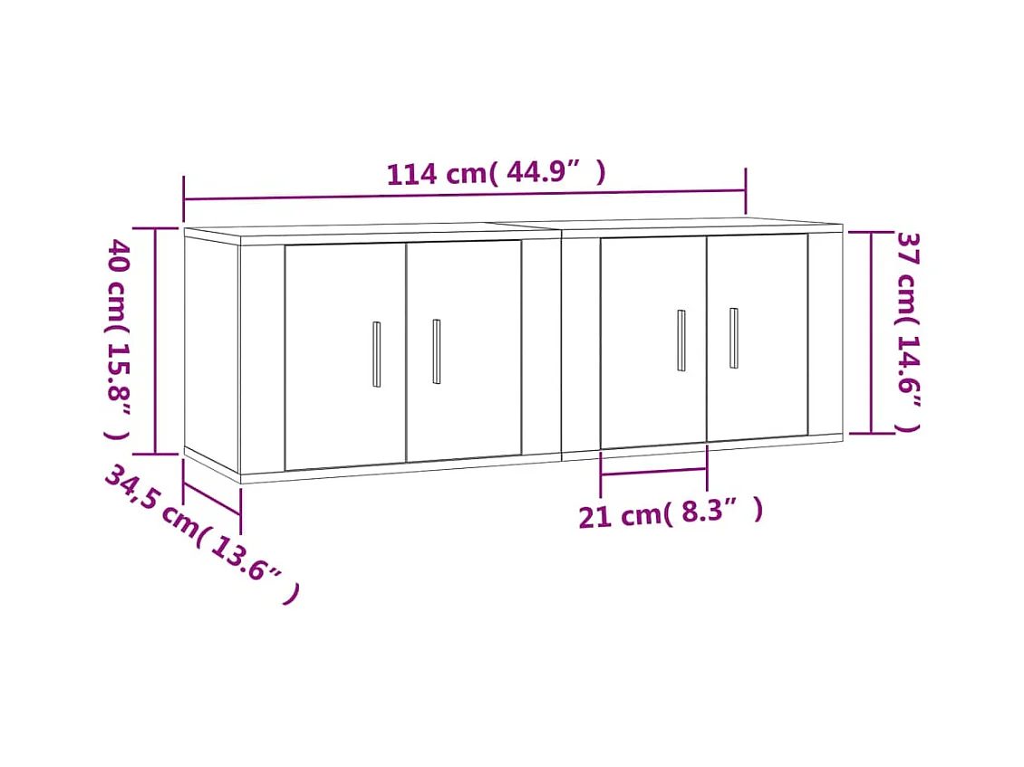 Mobile TV da parete 2 pezzi, bianco, 57x34,5x40 cm
