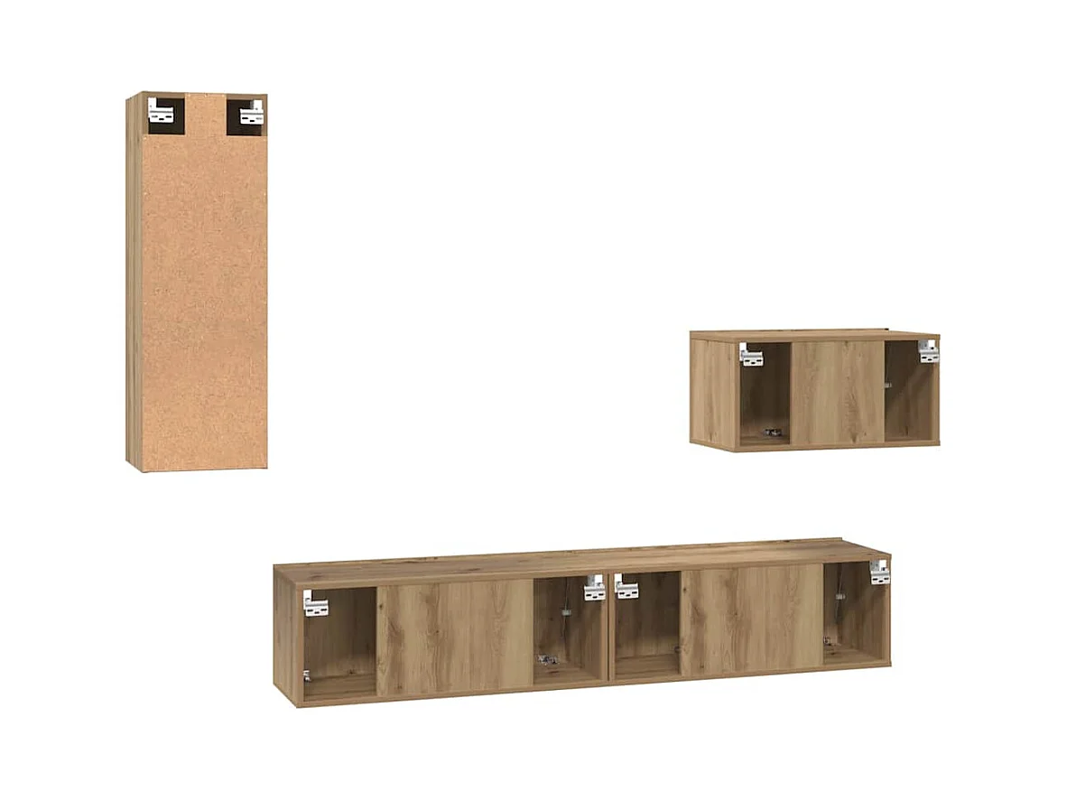 Set di mobili TV da parete 4 pezzi in rovere lavorato a mano