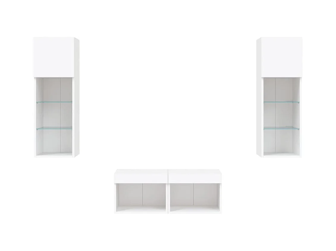 Mobile TV da parete a 4 pezzi con luci LED, bianco