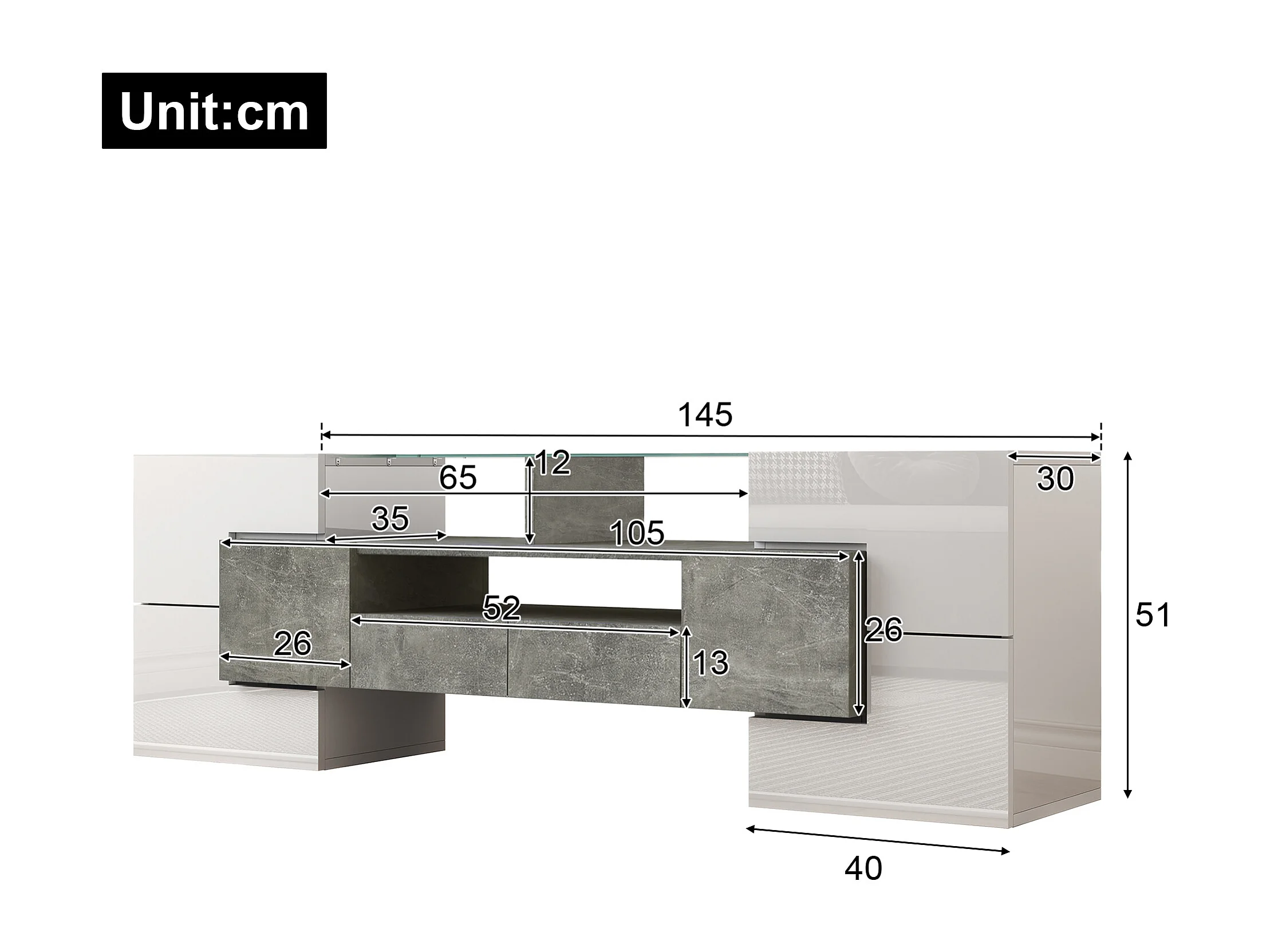 Meuble TV Moderne 145 cm Blanc Brillant LED Meuble Télé Salon Rangement Lowboard