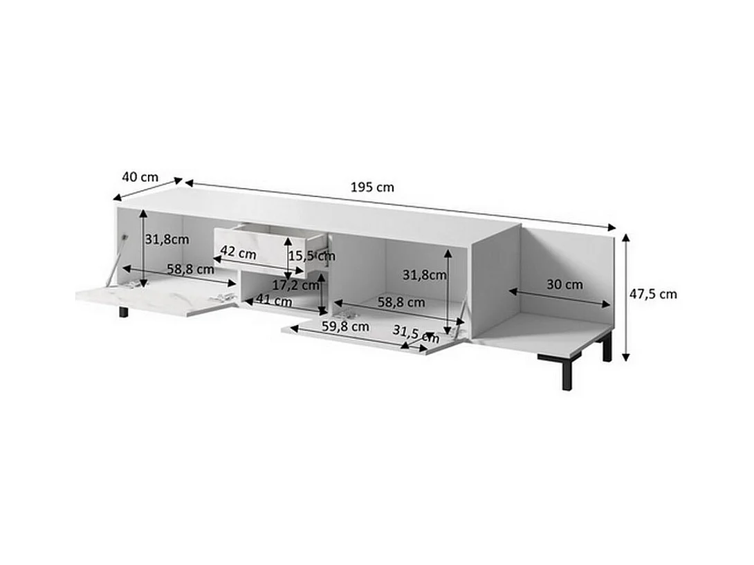 Mobile TV di design effetto marmo nero 195 cm Ketla