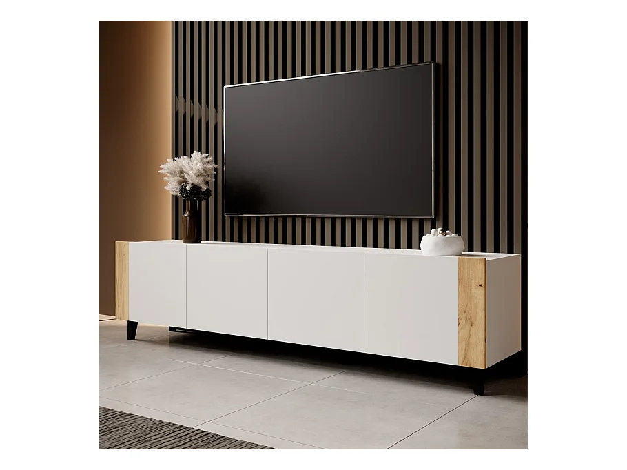 Mobile TV di design Tempo bianco opaco + legno 200 cm