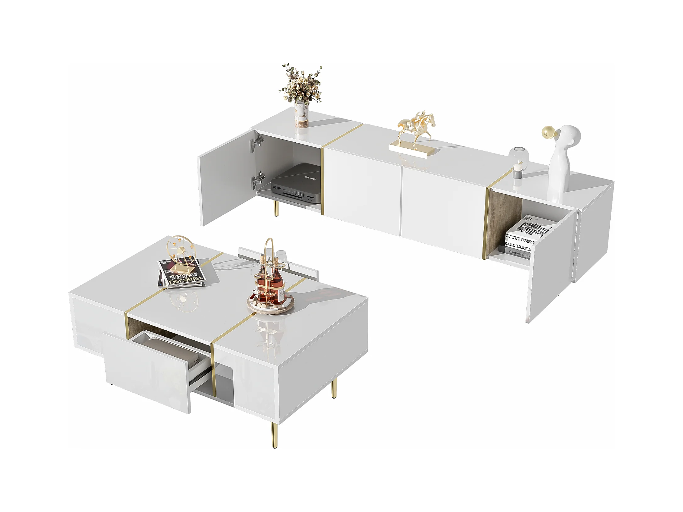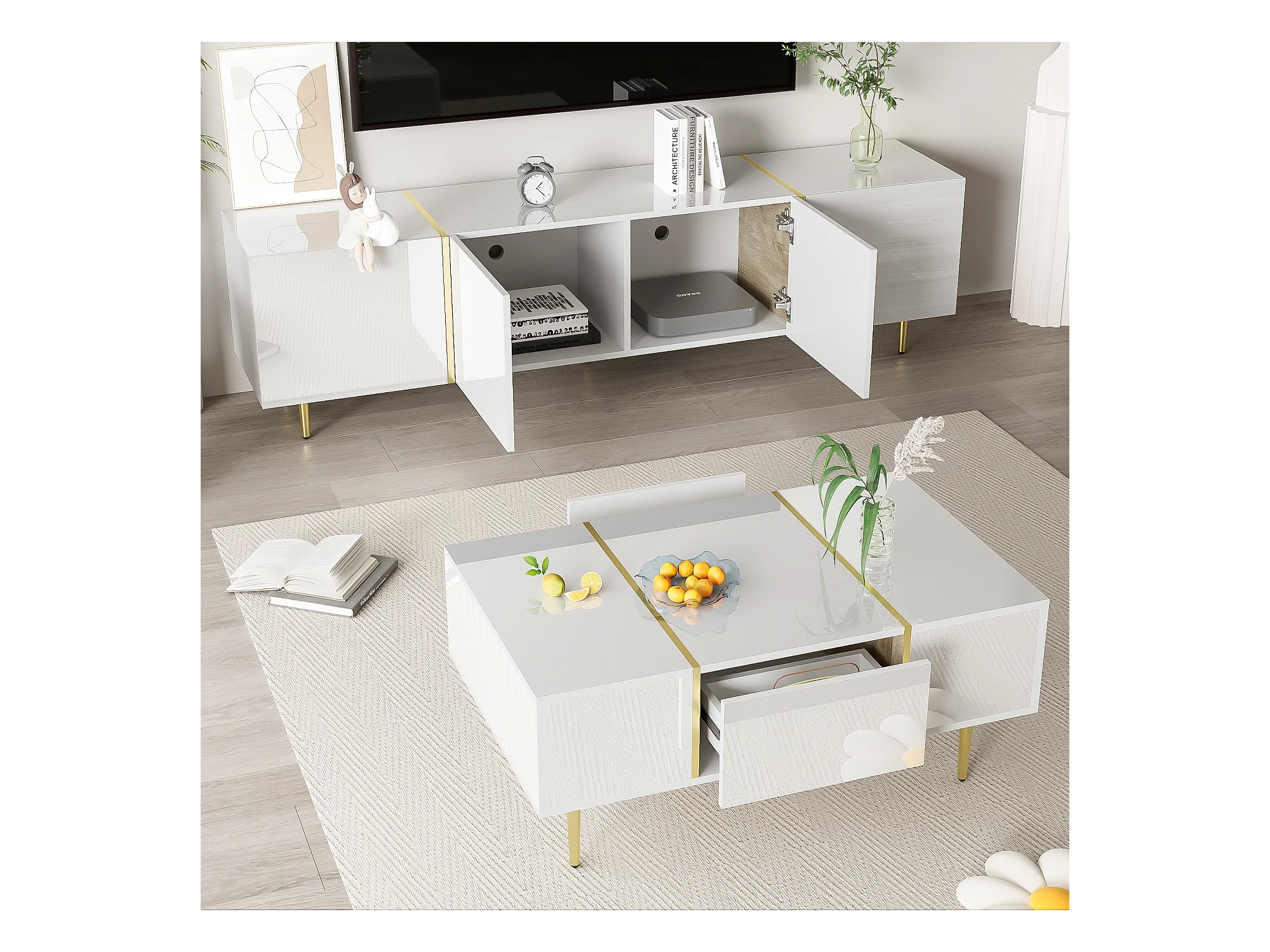 Mobile TV e tavolo basso 170 cm MDF bianco brillante con rangement salon moderne