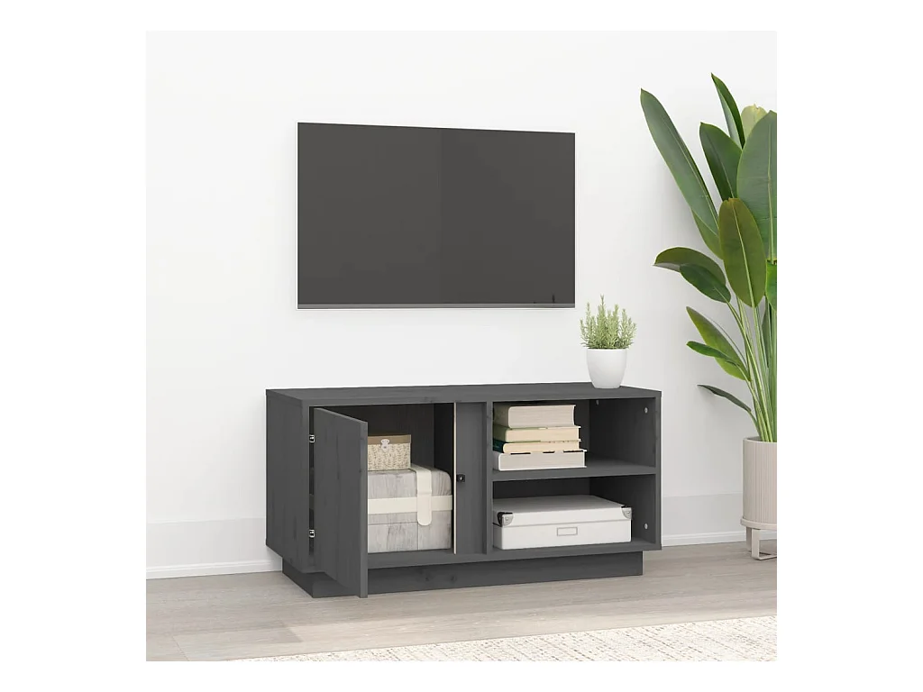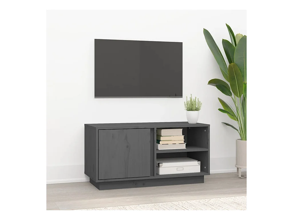 Mobile TV grigio 80x35x40,5 cm Legno massello di pino