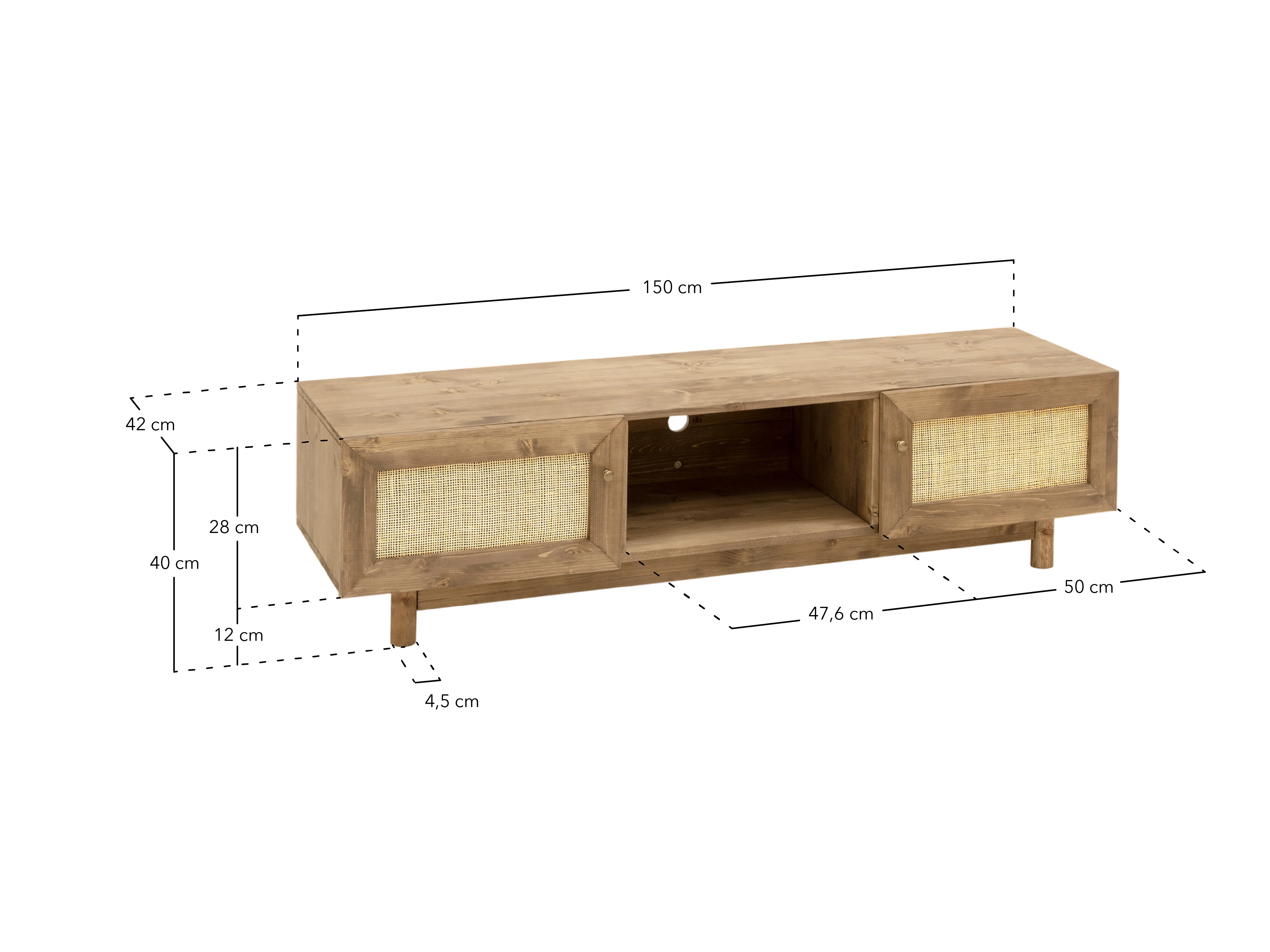 Mobile TV in legno massello a 2 ante in tono rovere scuro 150x40cm - FRIDA - DECOWOOD