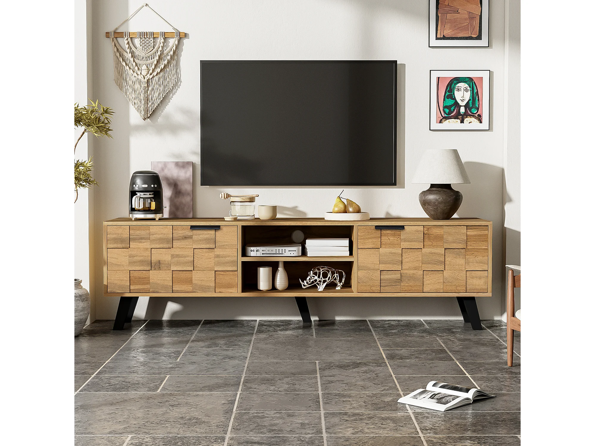 Mobile TV in legno, mobile TV marrone con 2 ante e 2 scomparti, mobile TV lungo 160 cm