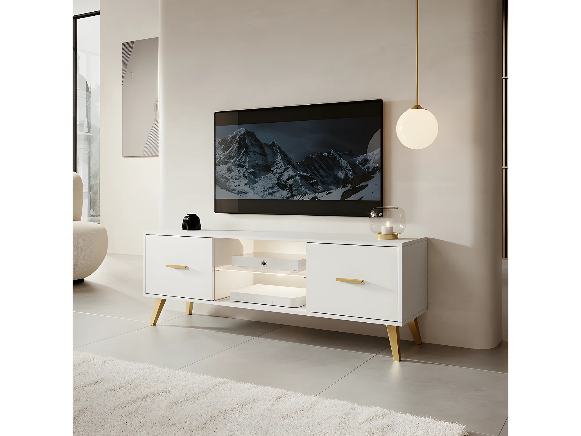 Mobile TV in piedi - 140 cm - bianco con maniglie e gambe oro - SAVONI I