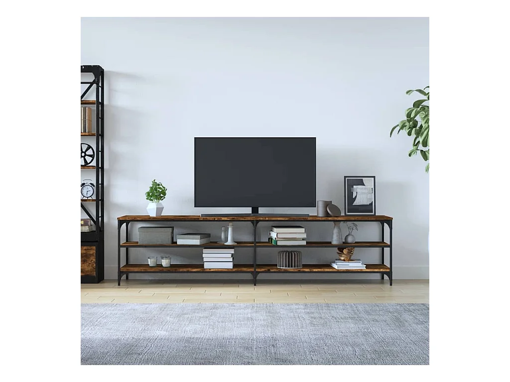 Mobile TV in rovere affumicato 200x30x50 cm in legno ingegnerizzato e metallo