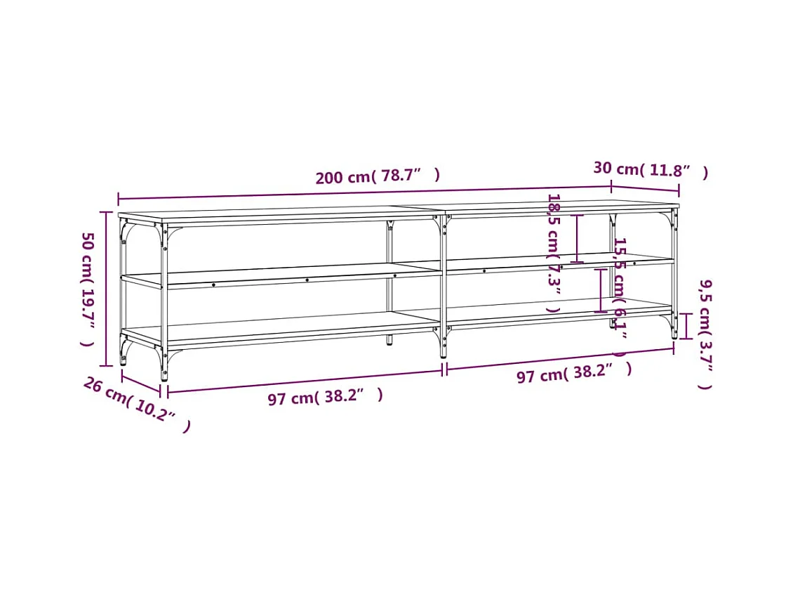 Mobile TV in rovere Sonoma 200x30x50 cm in legno ingegnerizzato e metallo