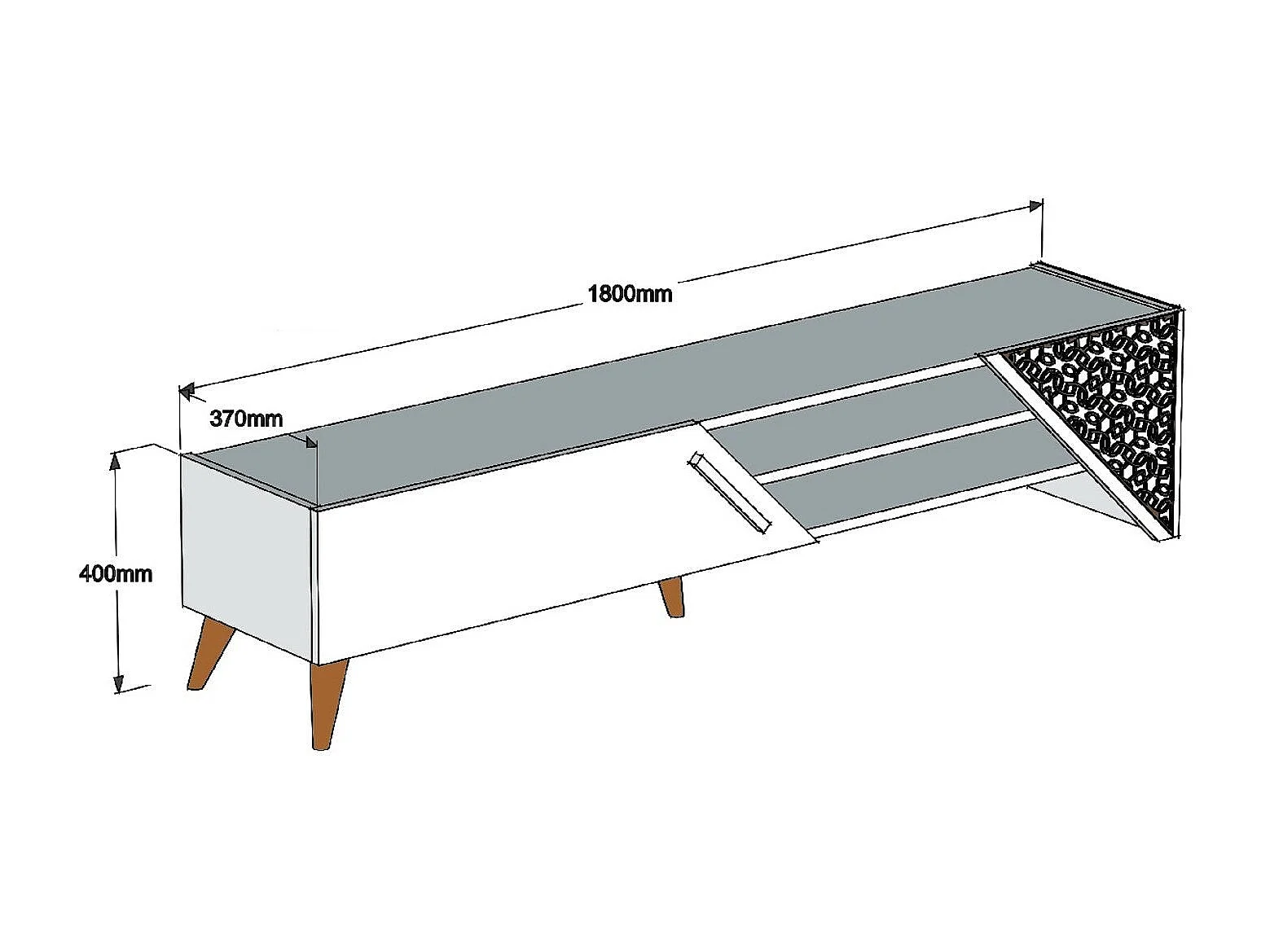 Mobile TV in cashmere con ripiani e ante – Design moderno, gambe a forma di palla, 180 x 44 x 39 cm