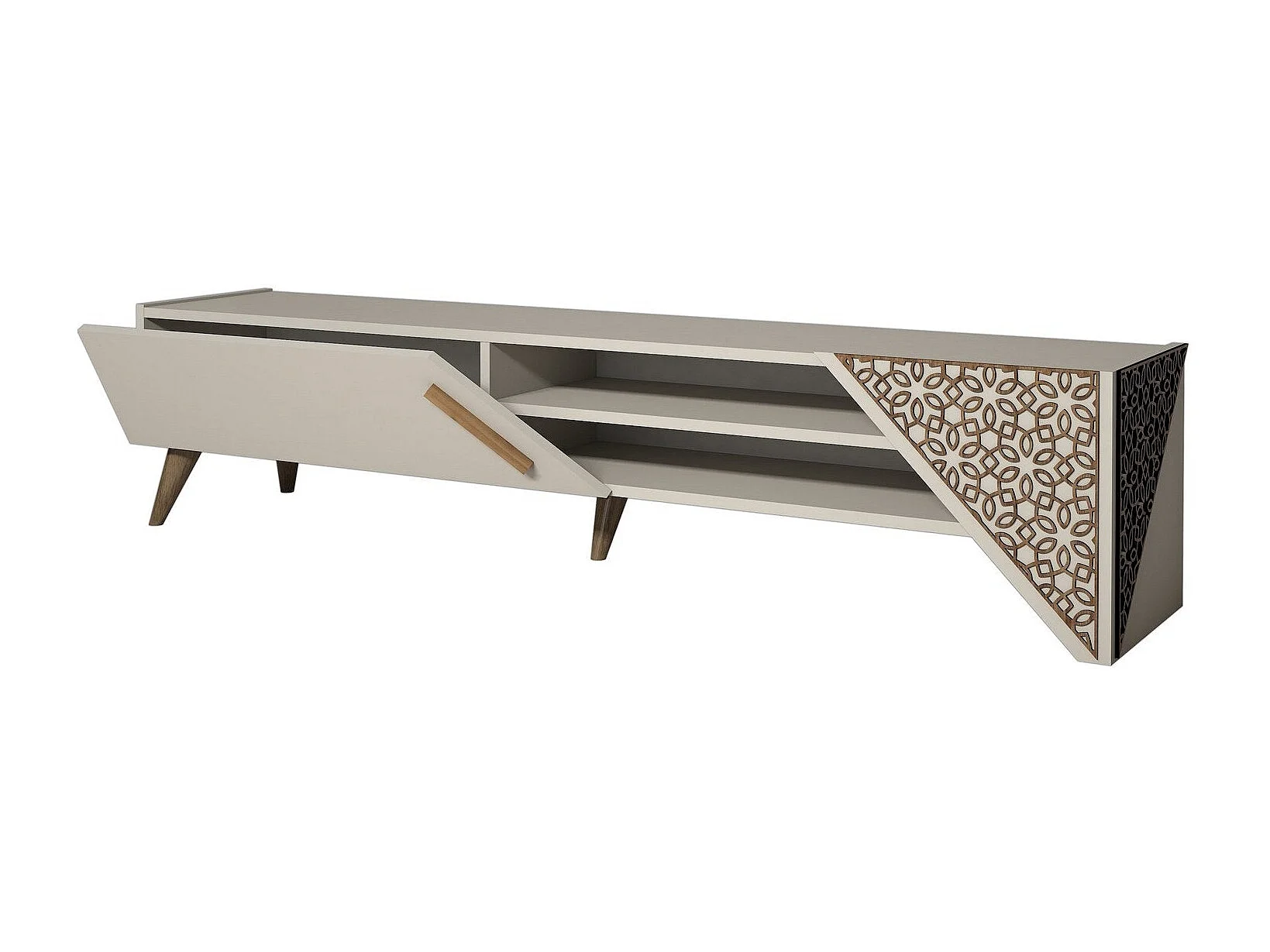 Mobile TV – larghezza 180 cm, altezza 37 cm, profondità 40 cm – crema – pannello truciolare rivestito in melaminico