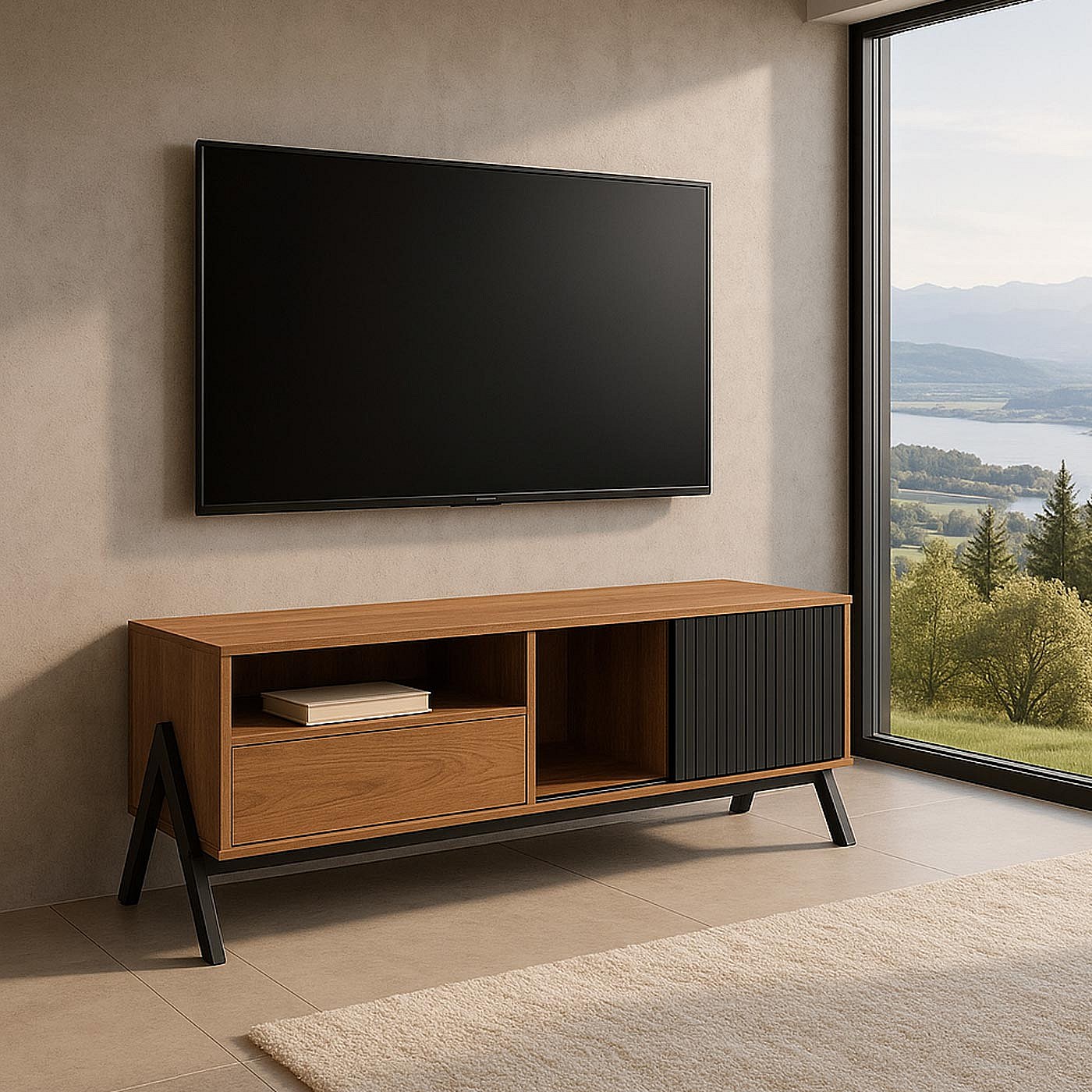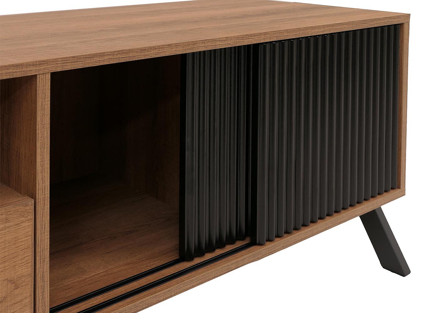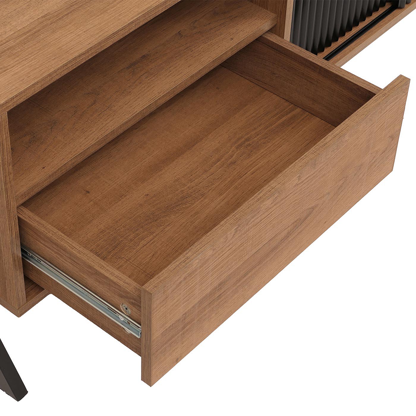 Mobile TV MCW-O40, basso ante scorrevoli, vani portaoggetti cassetti, MDF, metallo, melamina, 49x120x40 cm ~ naturale