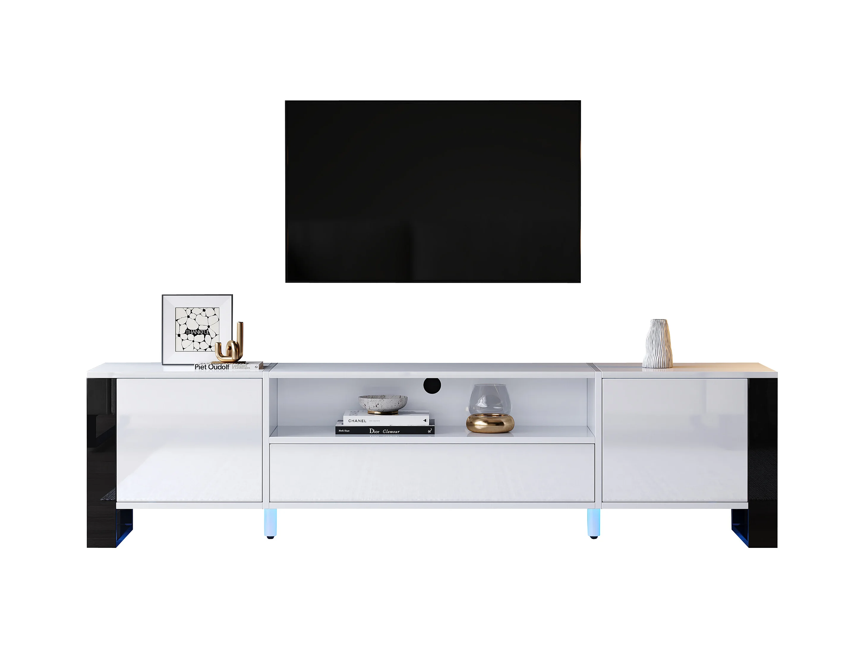 Mobile TV MDF 178 cm bianco laccato LED rangement pour salon jusqu'à 70 pouces