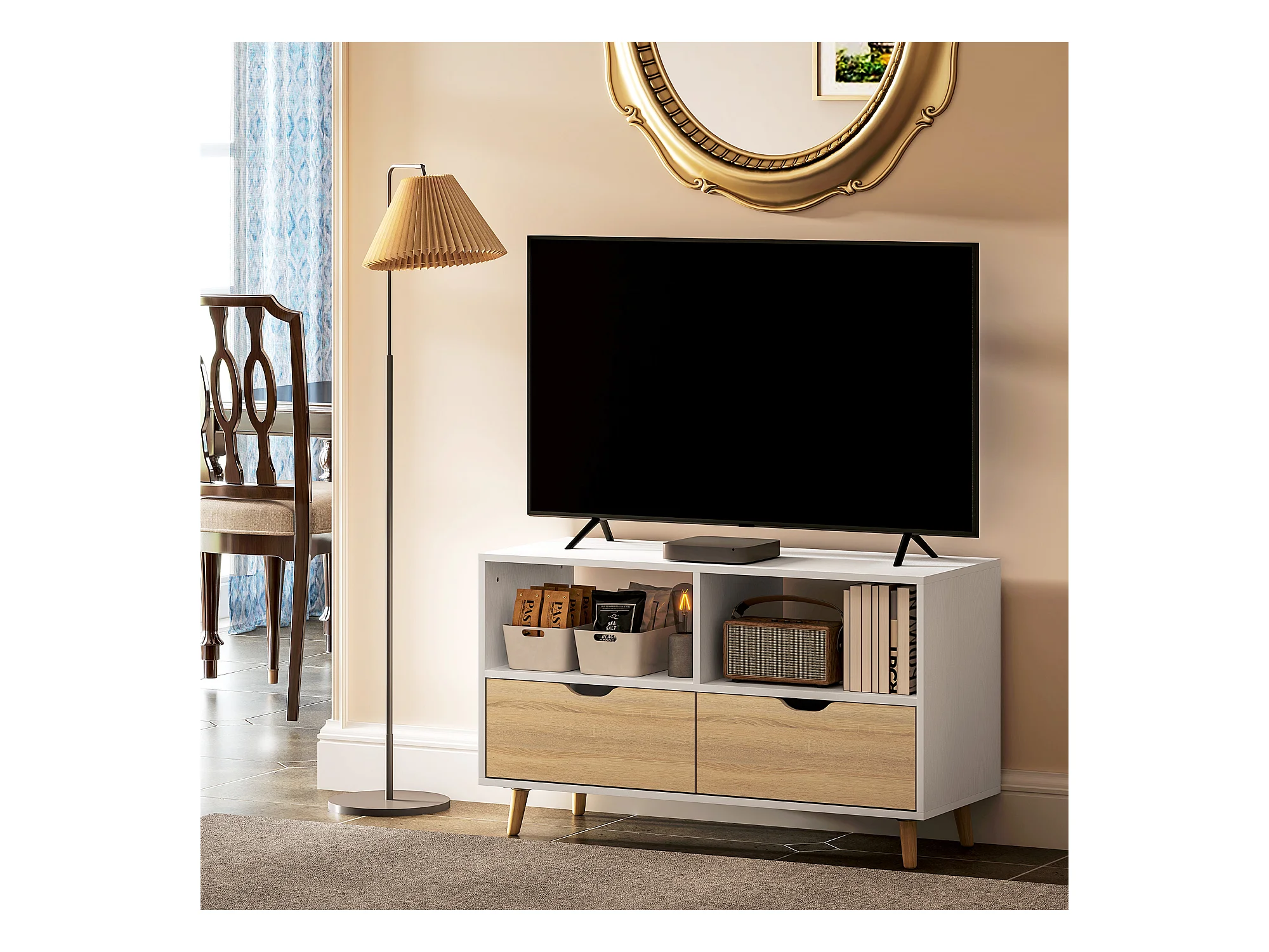 Mobile TV MDF 99 cm laccato bianco 2 cassetti e 2 ripiani per salone moderno
