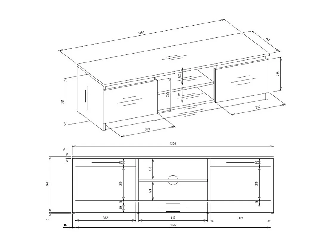Mobile TV basso in legno nero