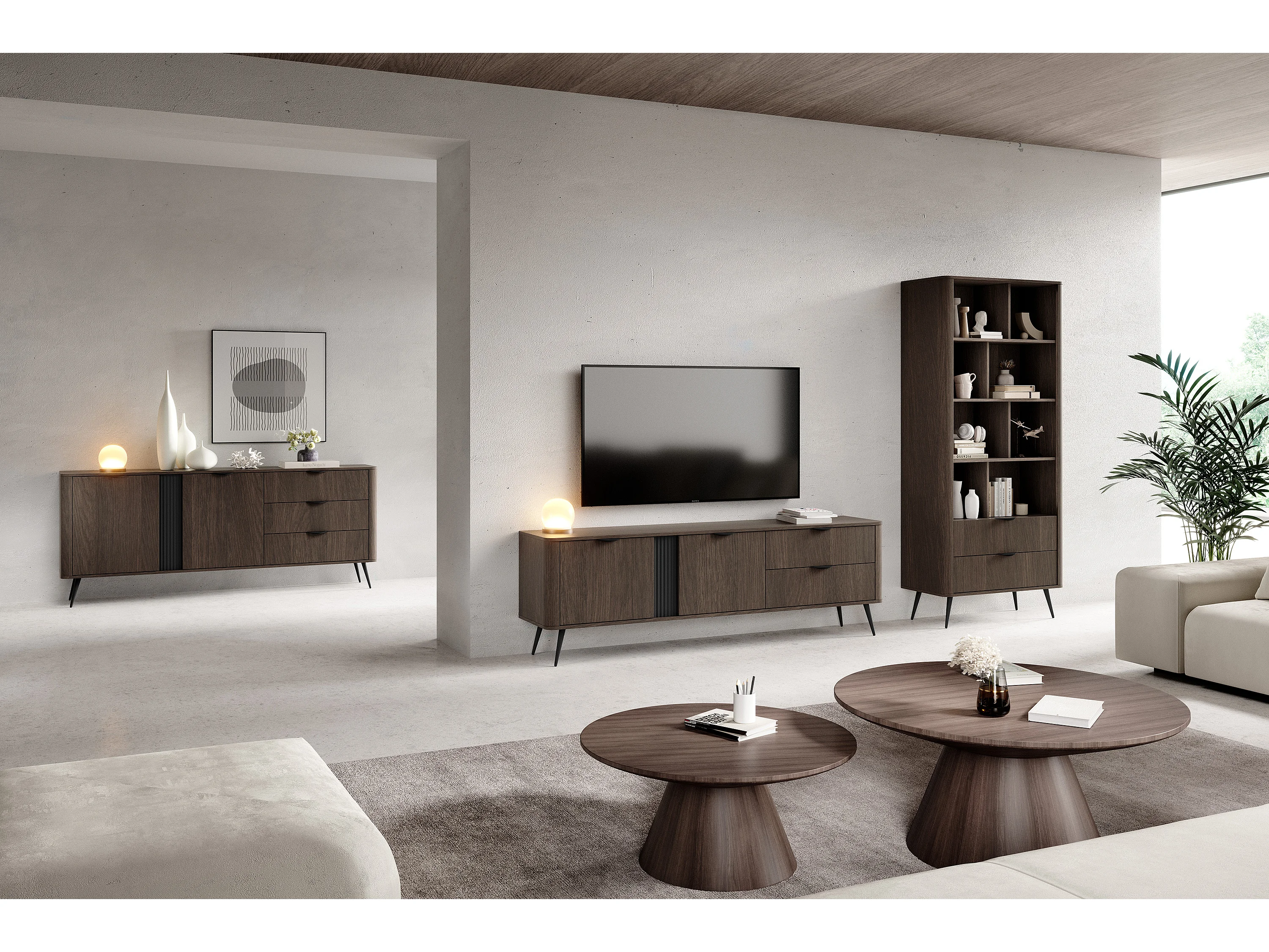 Mobile tv moderno 195x61 cm con 2 cassetti e 2 ante quercia scuro PTVLK33