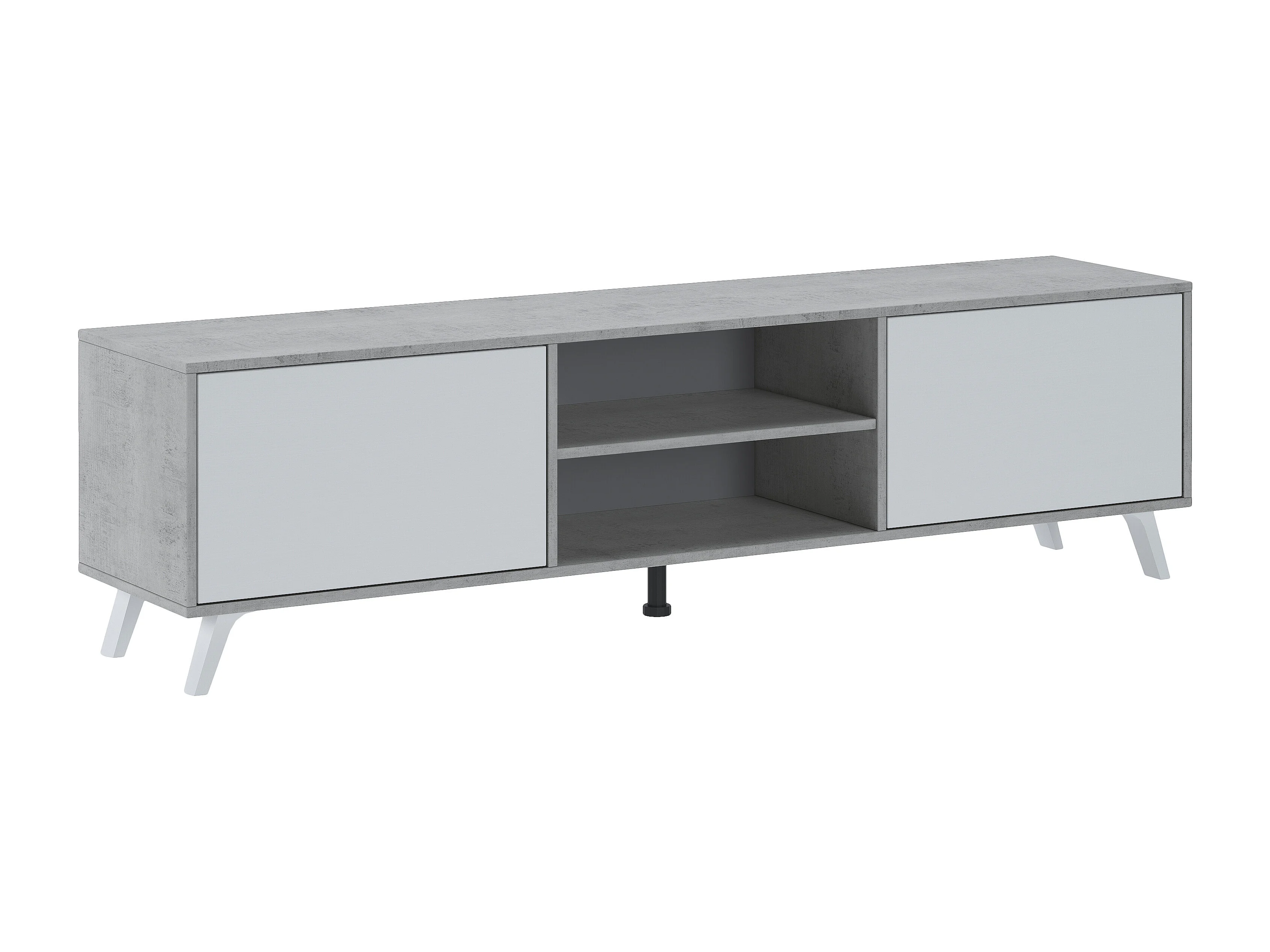 Mobile TV Moderno Con 2 Ante Battenti Ripiani Centrali Aperti Gambe Design Scandinavo Per Televisori fino a 75” 180 x 39,6 x 49 Cm Grigio Cemento E Bianco