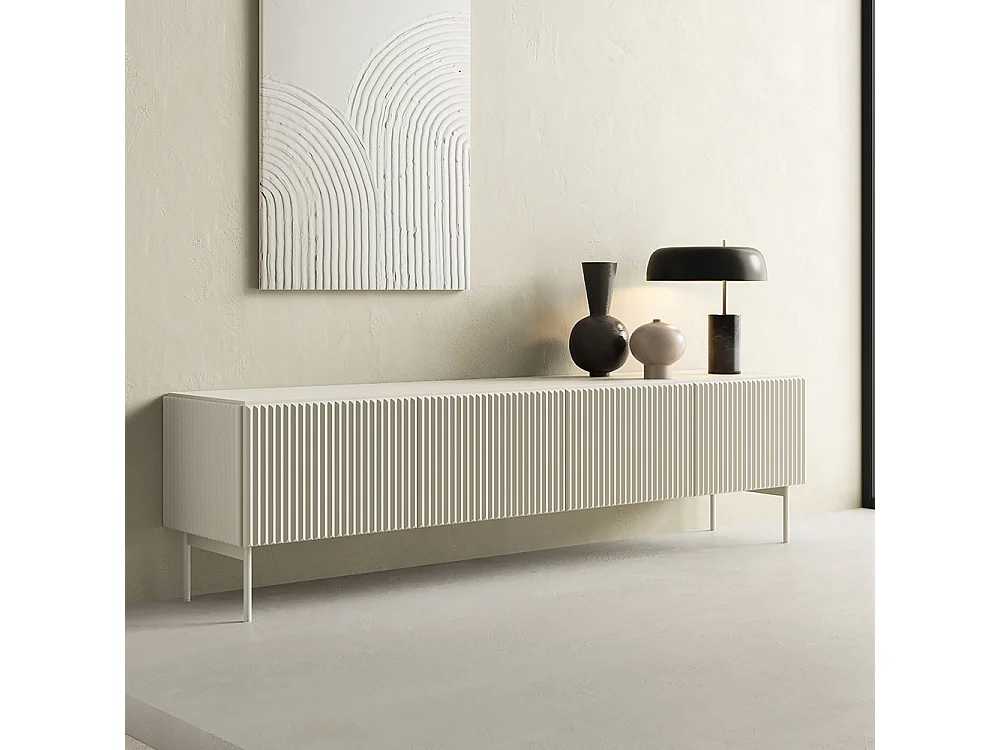 Mobile TV moderno 180 cm per soggiorno – 2 ante, senza maniglie, finitura opaca, da terra o sospeso, beige cashmere