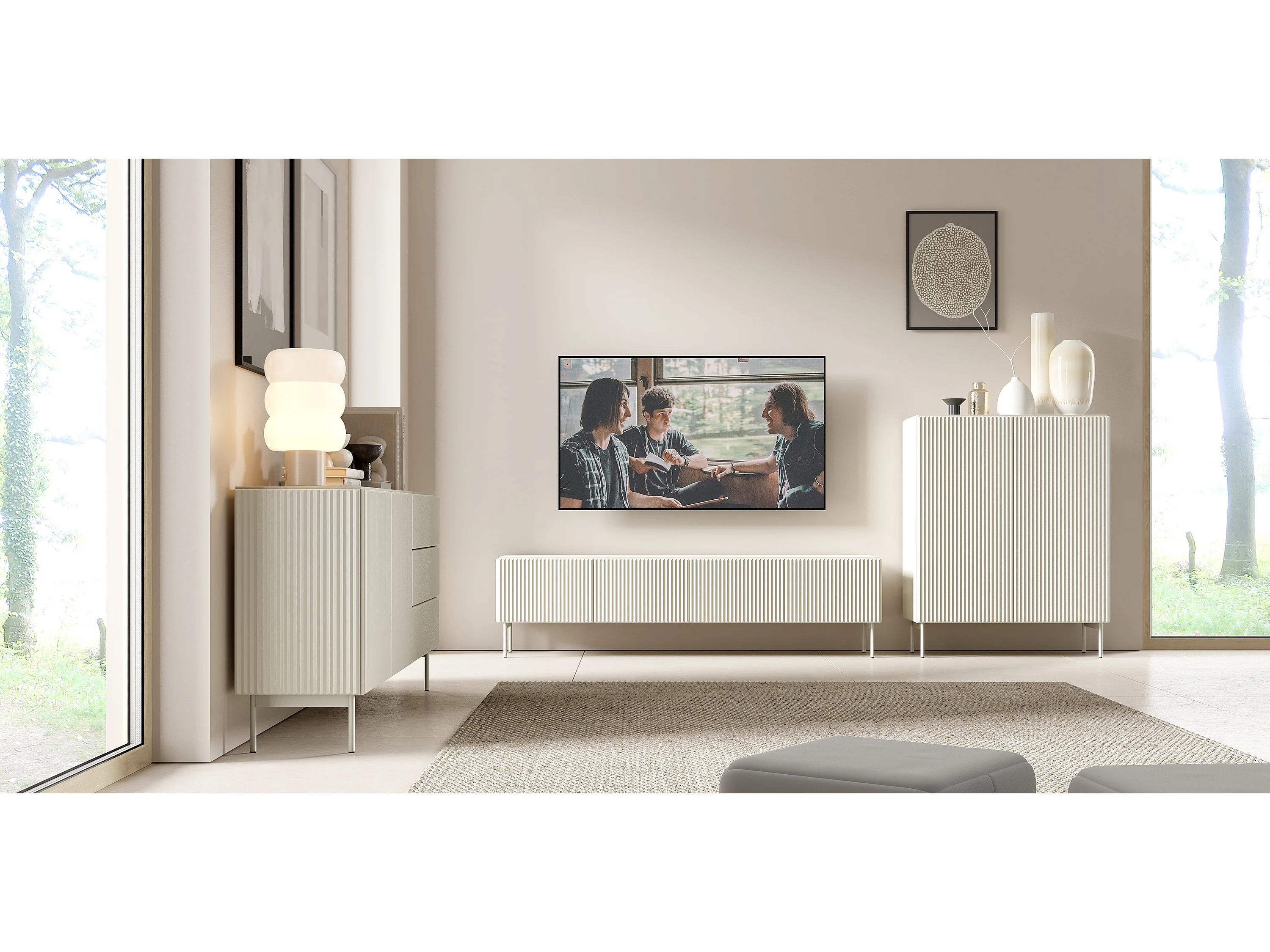 Mobile TV moderno 300 cm – senza maniglie, colore beige cashmere, opaco, a terra o sospeso