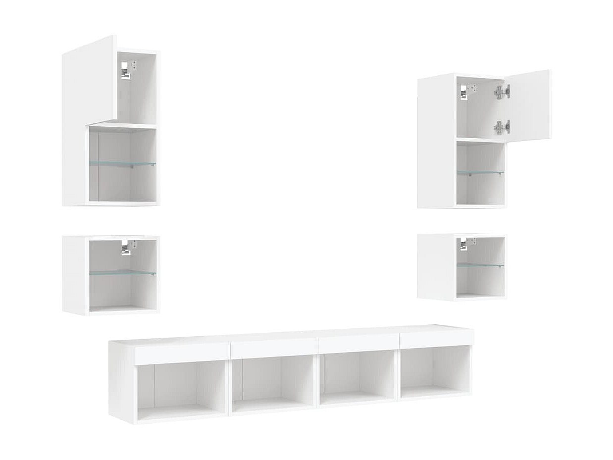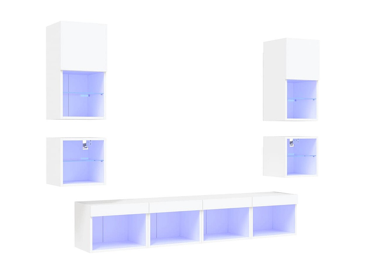 Mobile TV multimediale mensola TV buffet TV sala da pranzo soggiorno camera da letto con LED 8 pezzi legno ingegnerizzato bianco 02_0029472