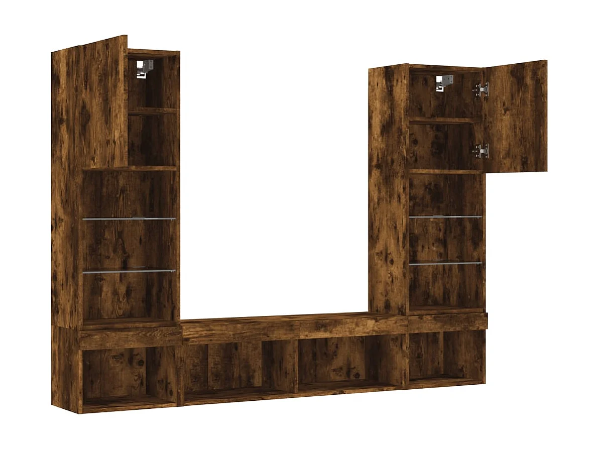 Mobile TV multimediale mensola TV credenza TV sala da pranzo soggiorno camera da letto con LED 5 pezzi rovere affumicato legno ingegnerizzato marrone 02_0029405
