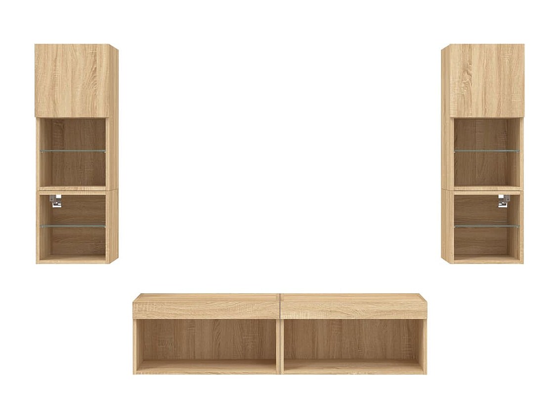 Mobile TV multimediale mensola TV credenza TV sala da pranzo soggiorno camera da letto con LED 6 pezzi legno ingegnerizzato rovere Sonoma marrone 02_0029455
