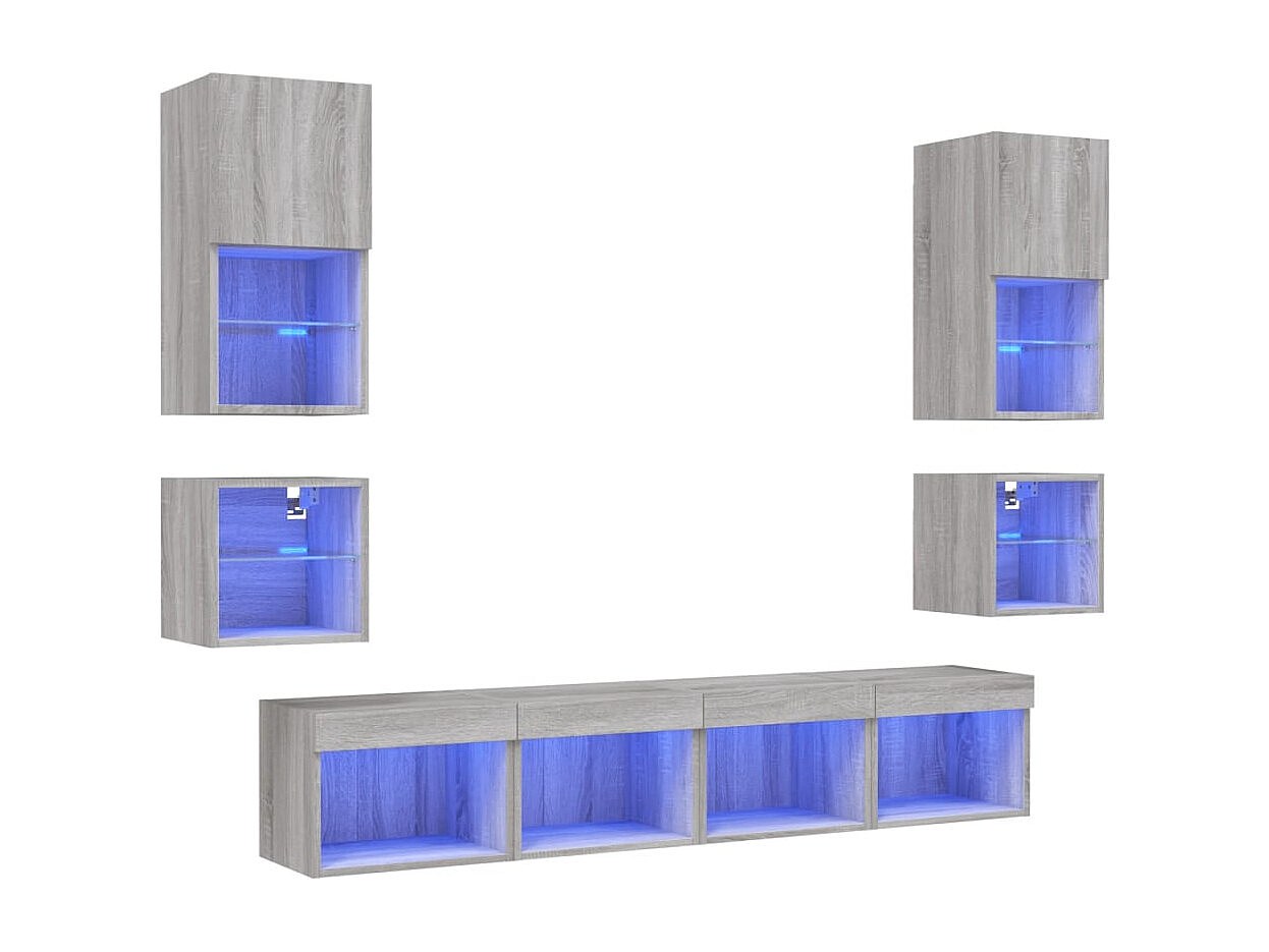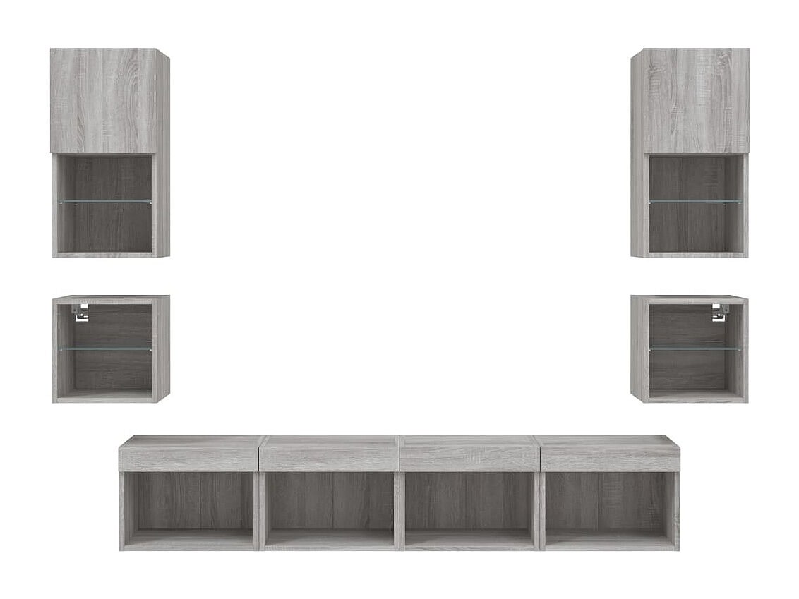 Mobile TV multimediale mensola TV credenza TV sala da pranzo soggiorno camera da letto con LED 8 pezzi legno ingegnerizzato Sonoma grigio 02_0029484