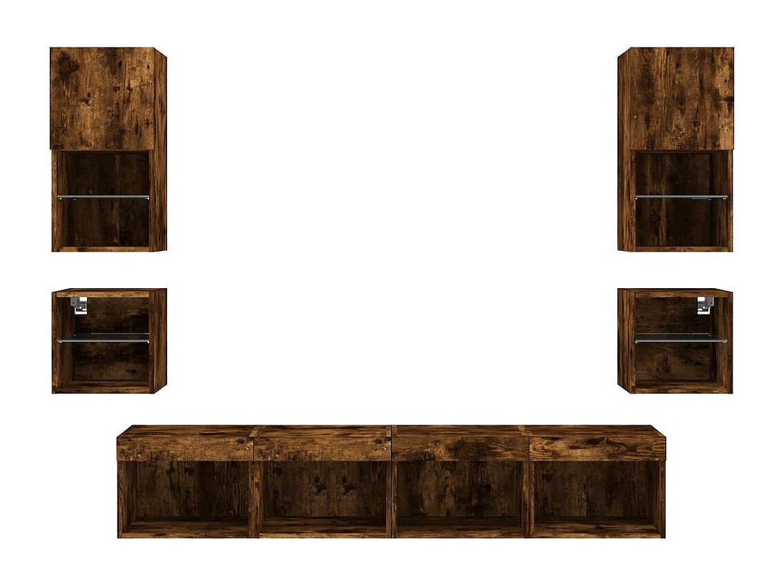Mobile TV multimediale mensola TV credenza TV sala da pranzo soggiorno camera da letto con LED 8 pezzi rovere affumicato legno ingegnerizzato marrone 02_0029480
