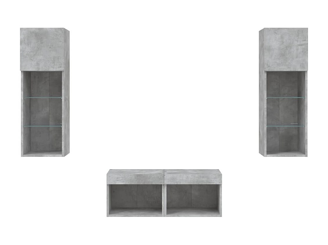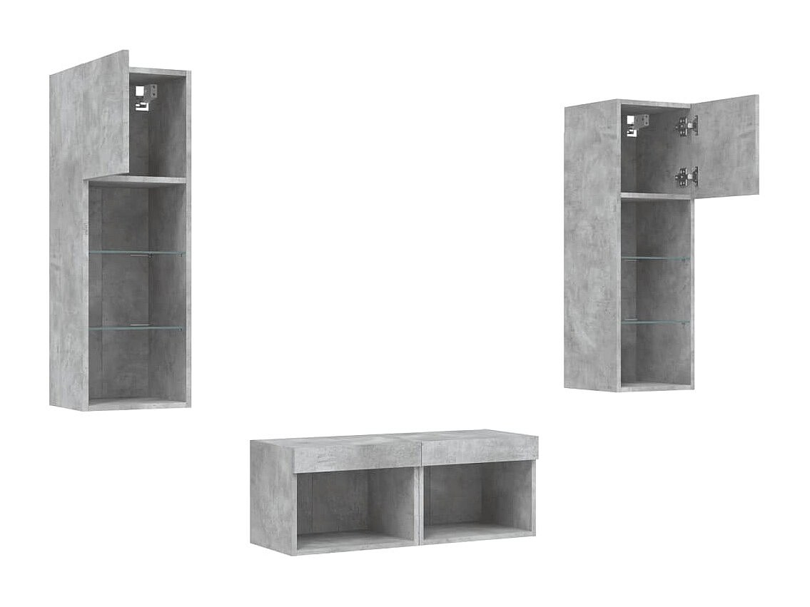 Mobile TV multimediale scaffale TV buffet TV sala da pranzo soggiorno camera da letto montaggio a parete x 4 pezzi con luci LED grigio 02_0028211