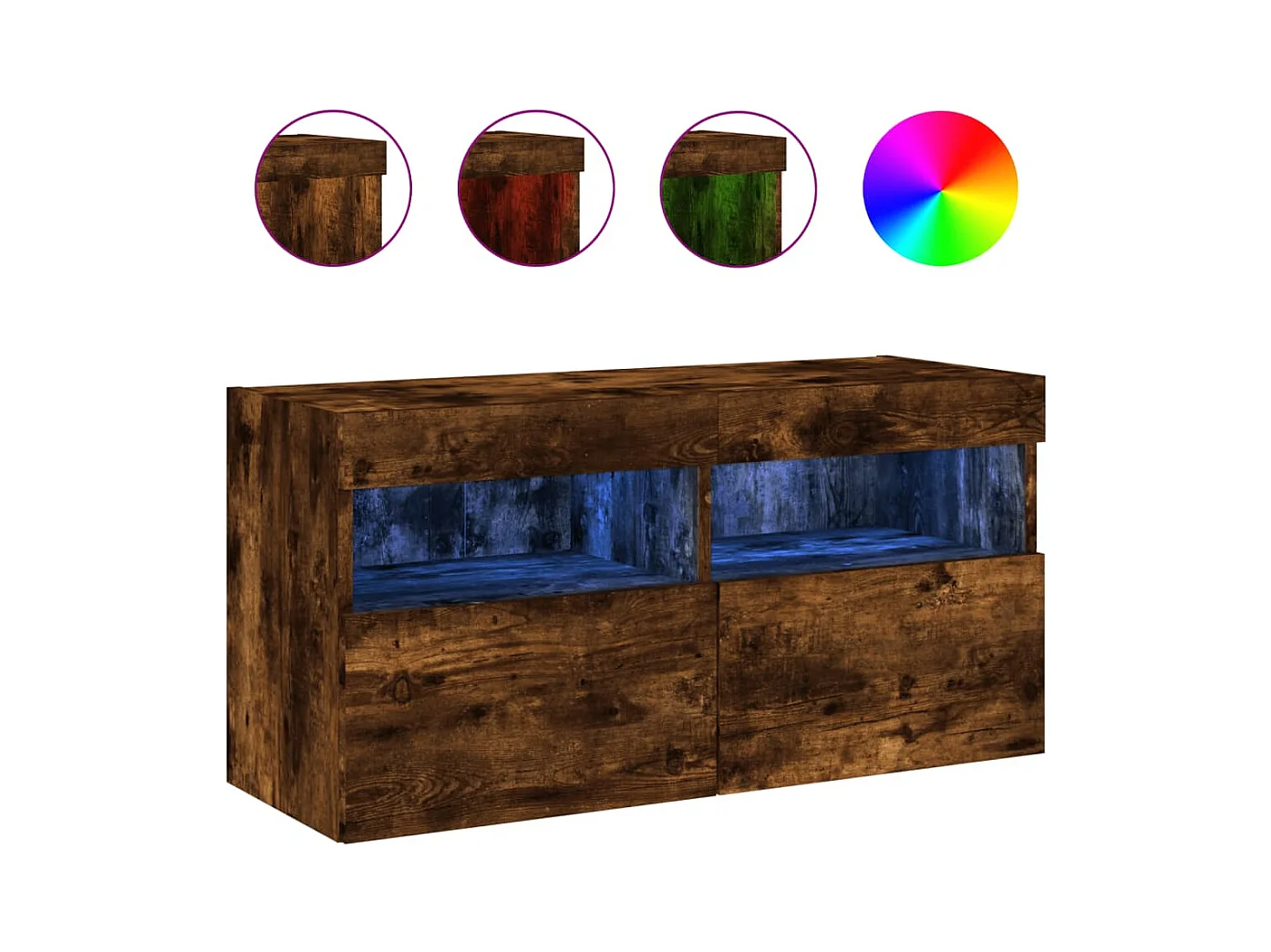 Mobile TV multimediale scaffale TV credenza TV sala da pranzo soggiorno camera da letto a parete con luci LED rovere affumicato 80 x 30 x 40 cm marrone 02_0027991