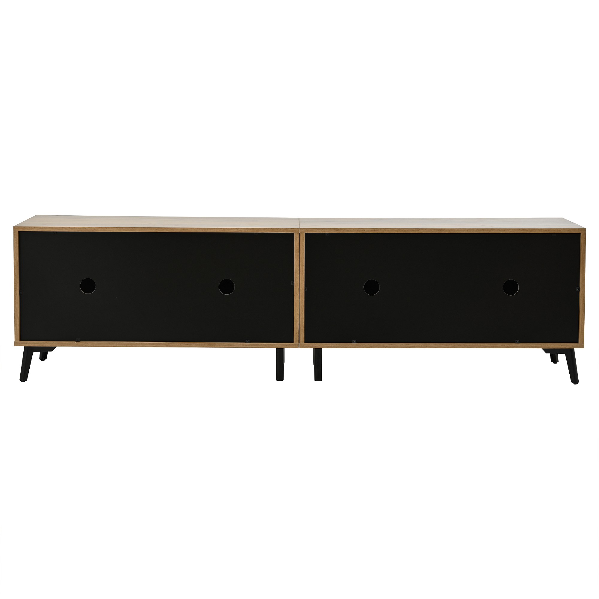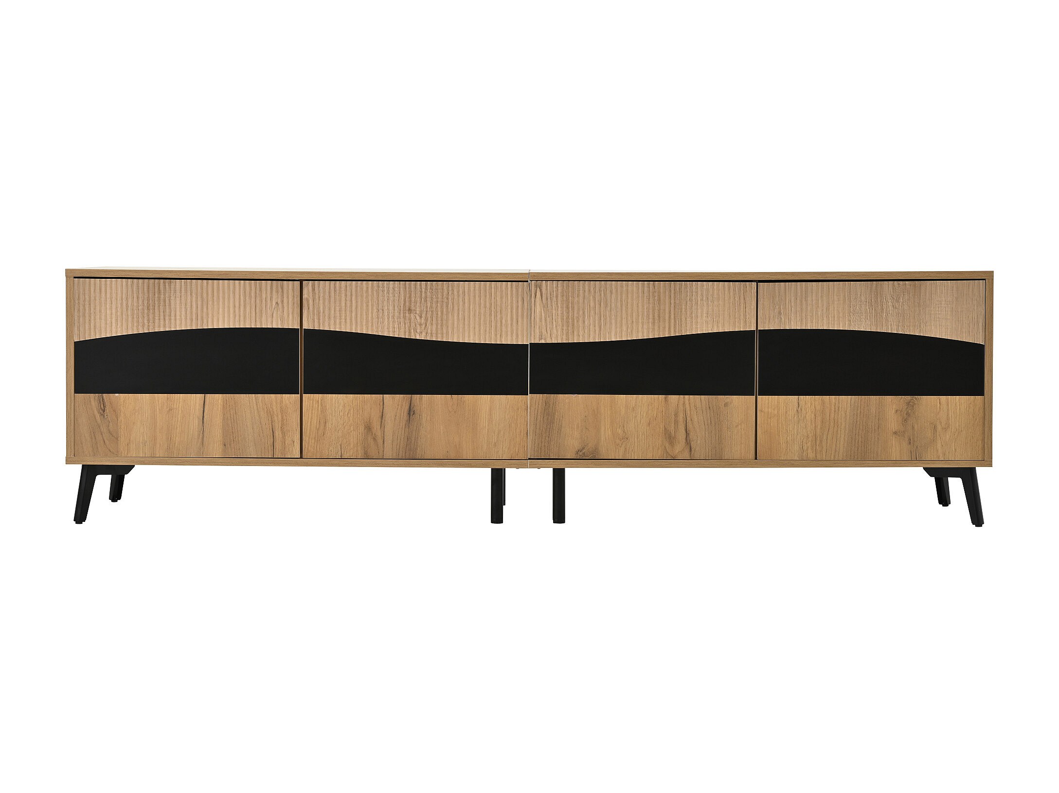 Mobile TV naturale e nero con 4 ante, piano in legno venato 180x40x50cm