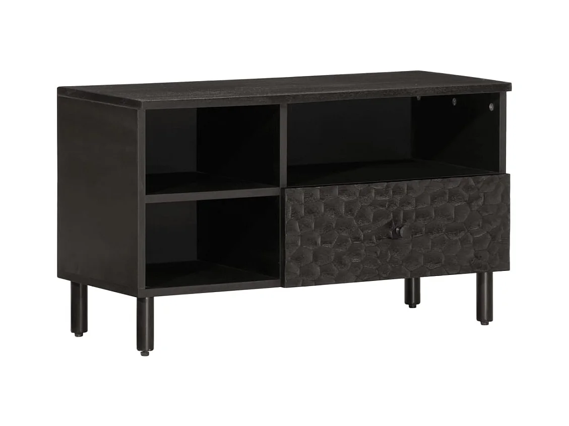 Mobile TV nero 80x33x46 cm in legno massello di mango