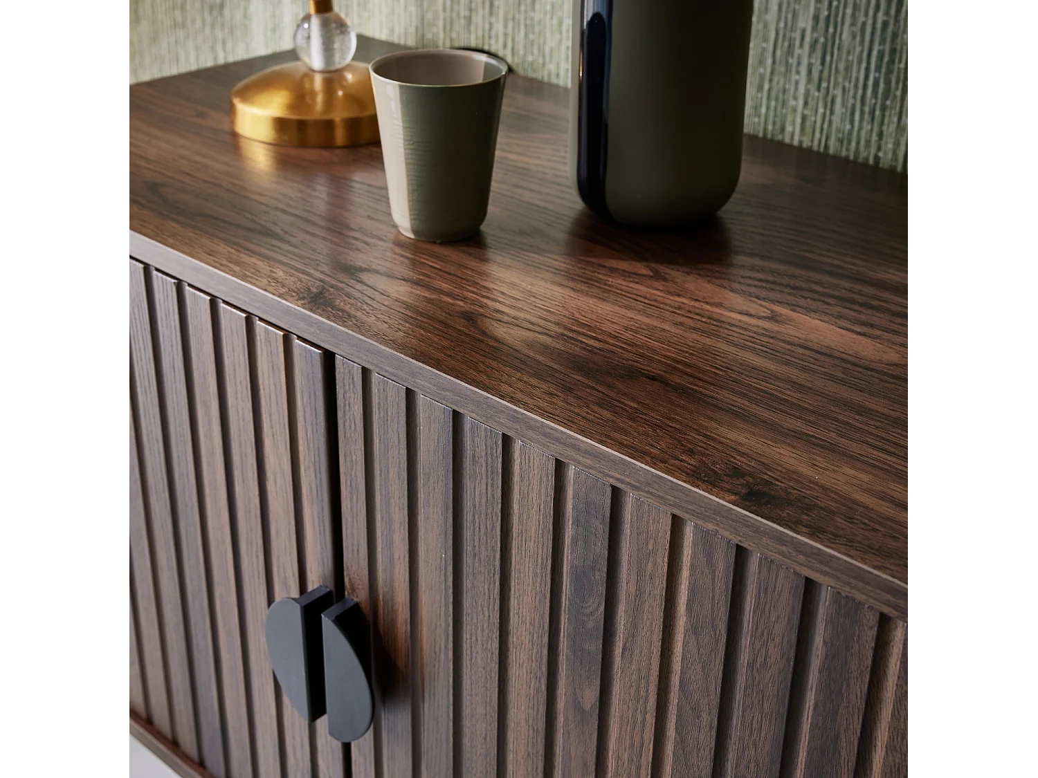 Mobile tv nero effetto legno scanalato, 160cm, marrone scuro