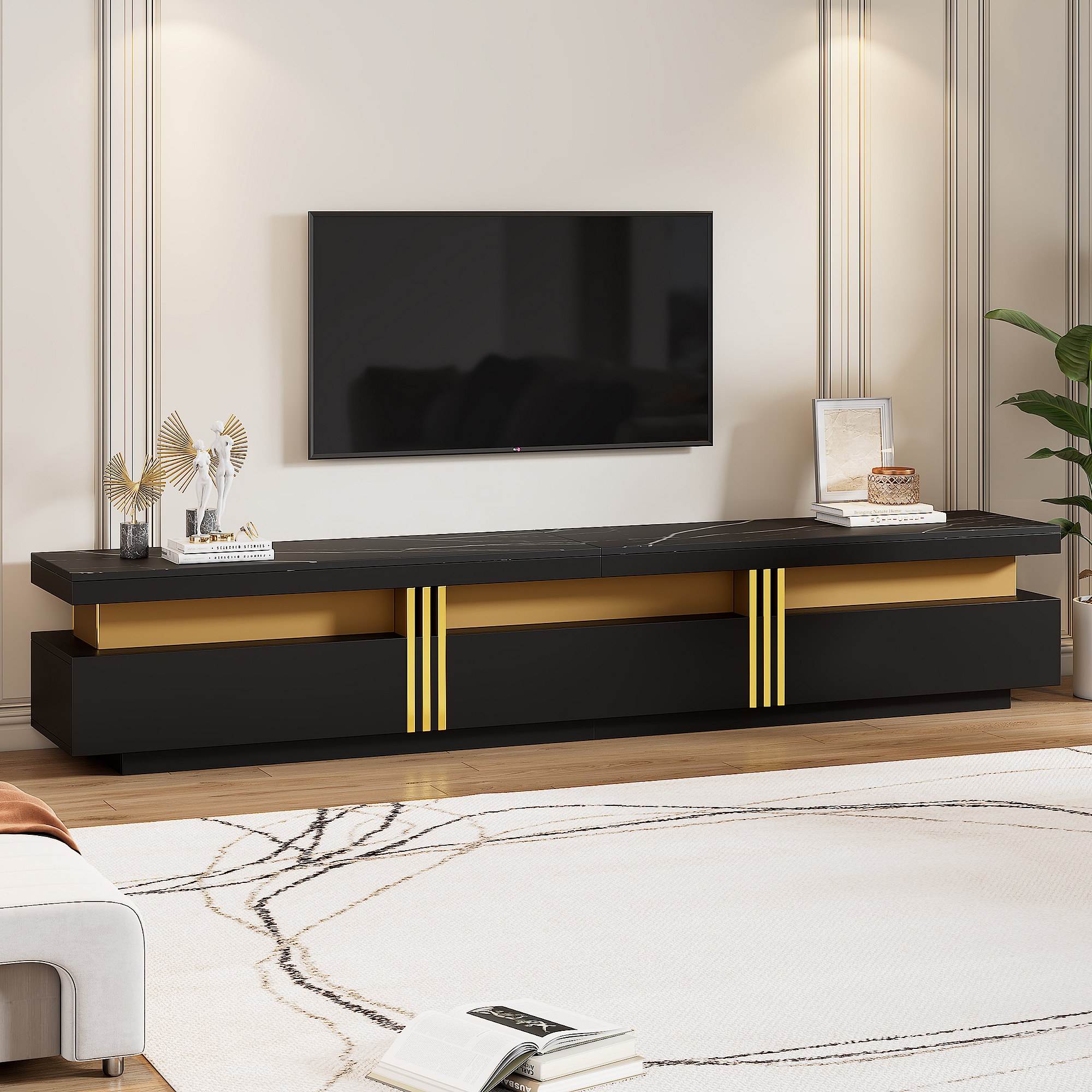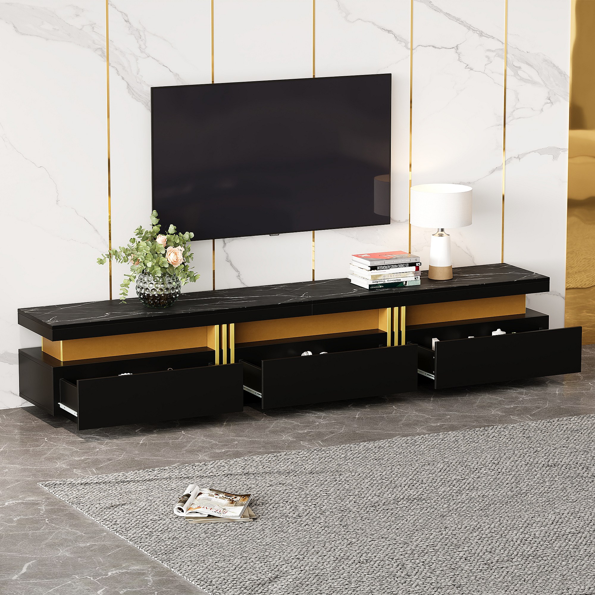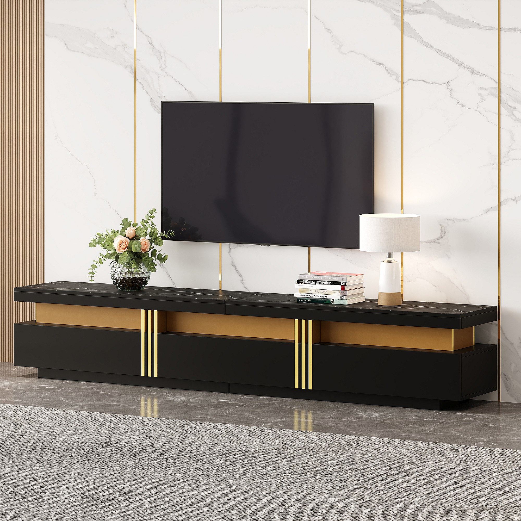 Mobile TV Noir 200 cm effetto marmo 3 ripiani per TV 90 pollici Salon