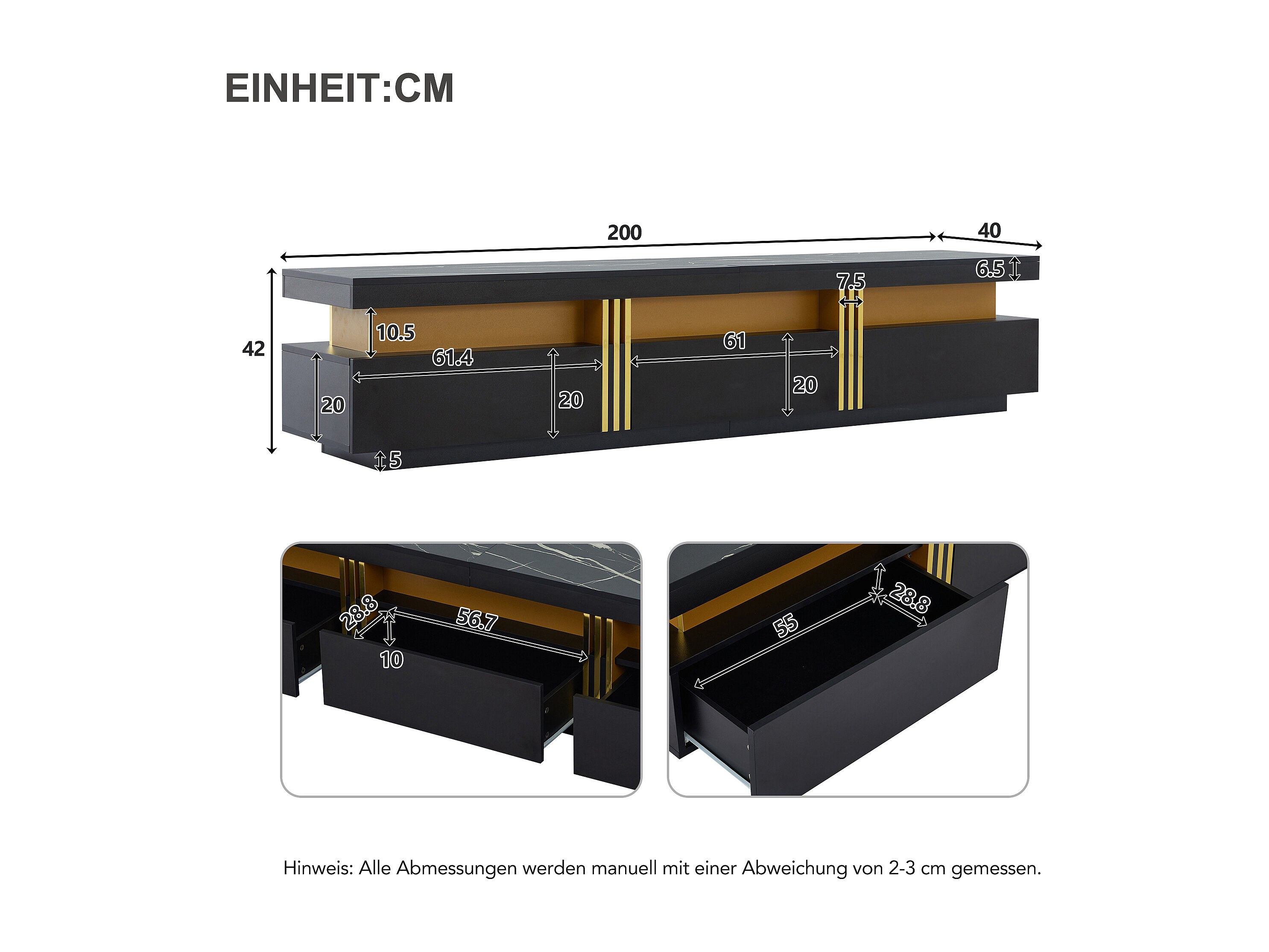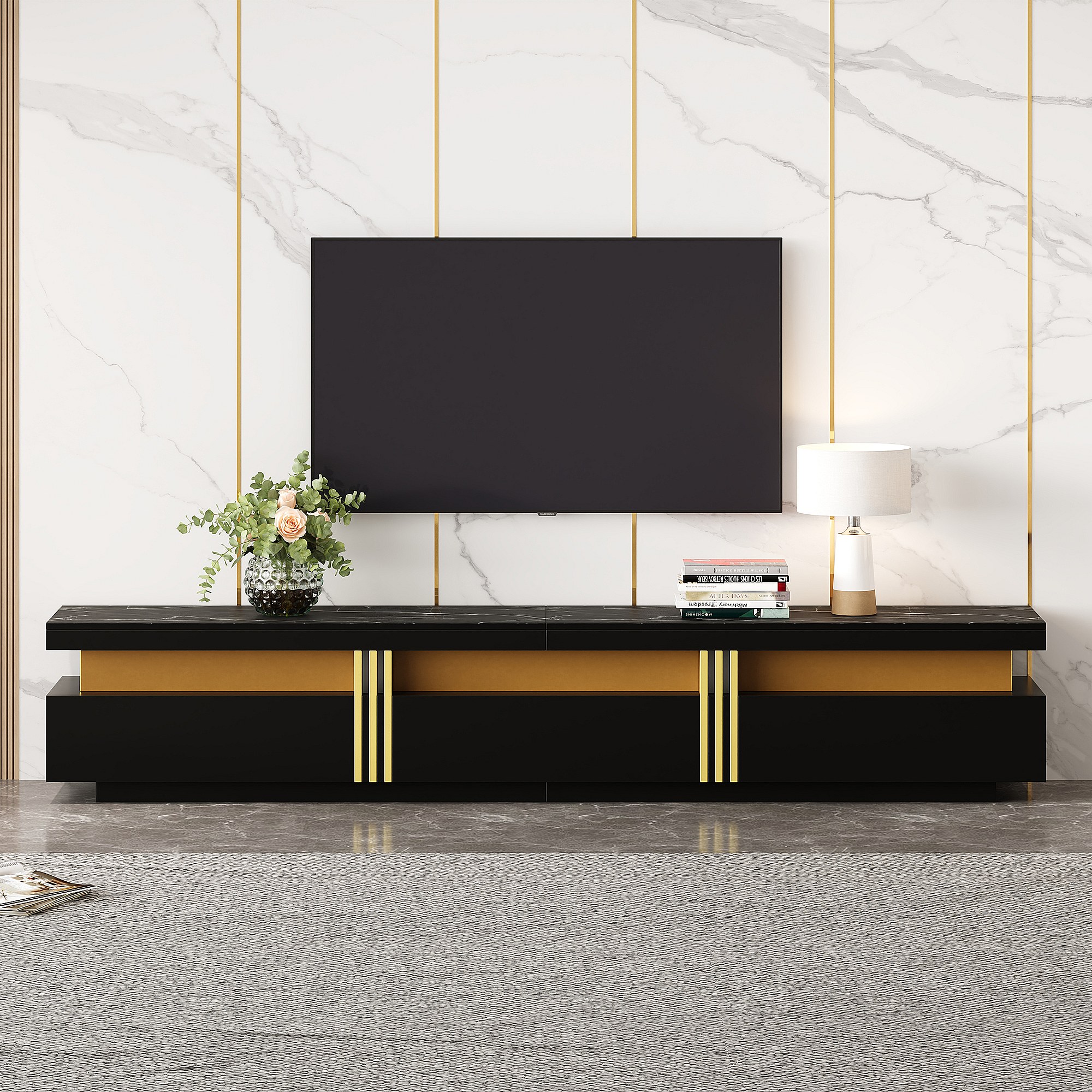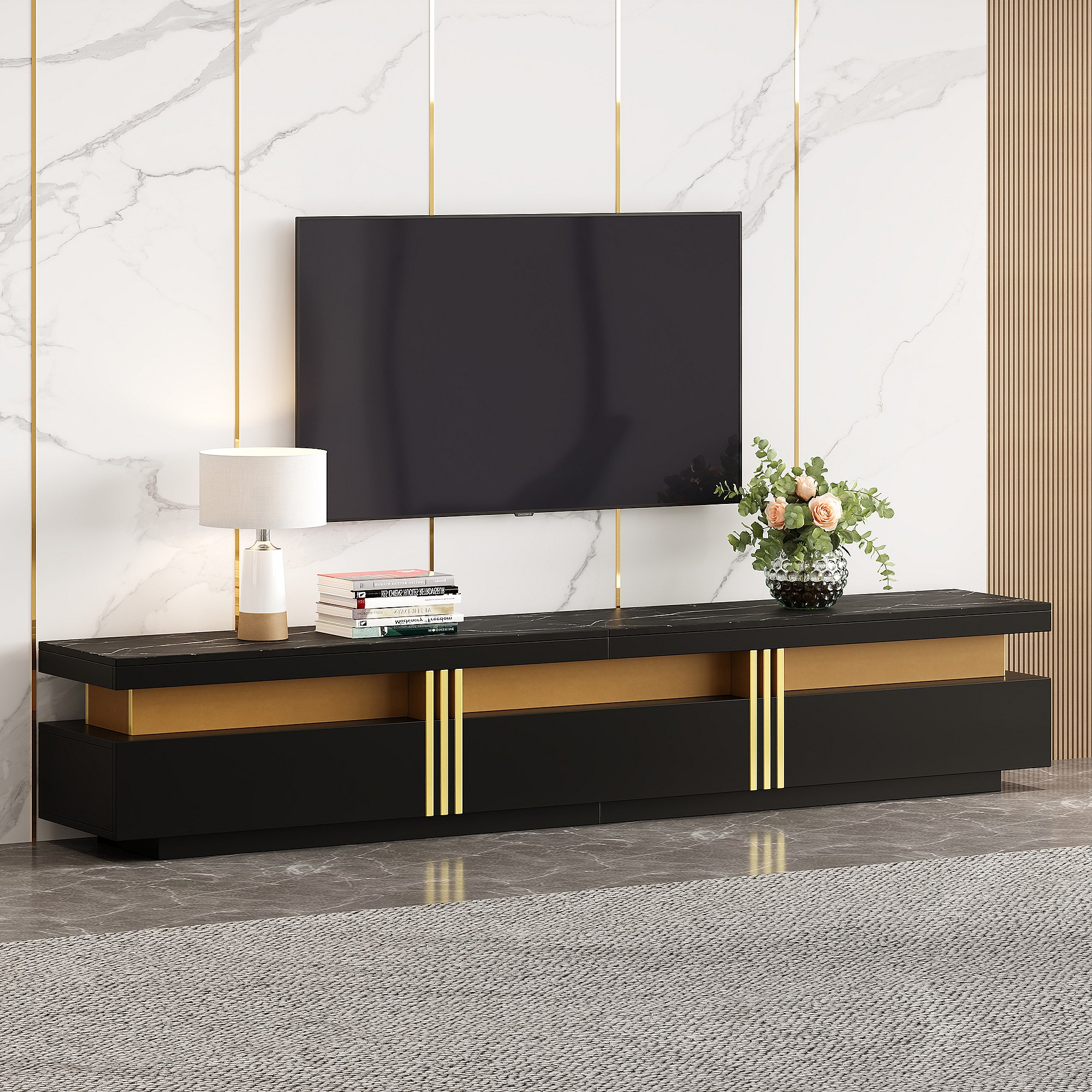 Mobile TV Noir 200 cm effetto marmo 3 ripiani per TV 90 pollici Salon