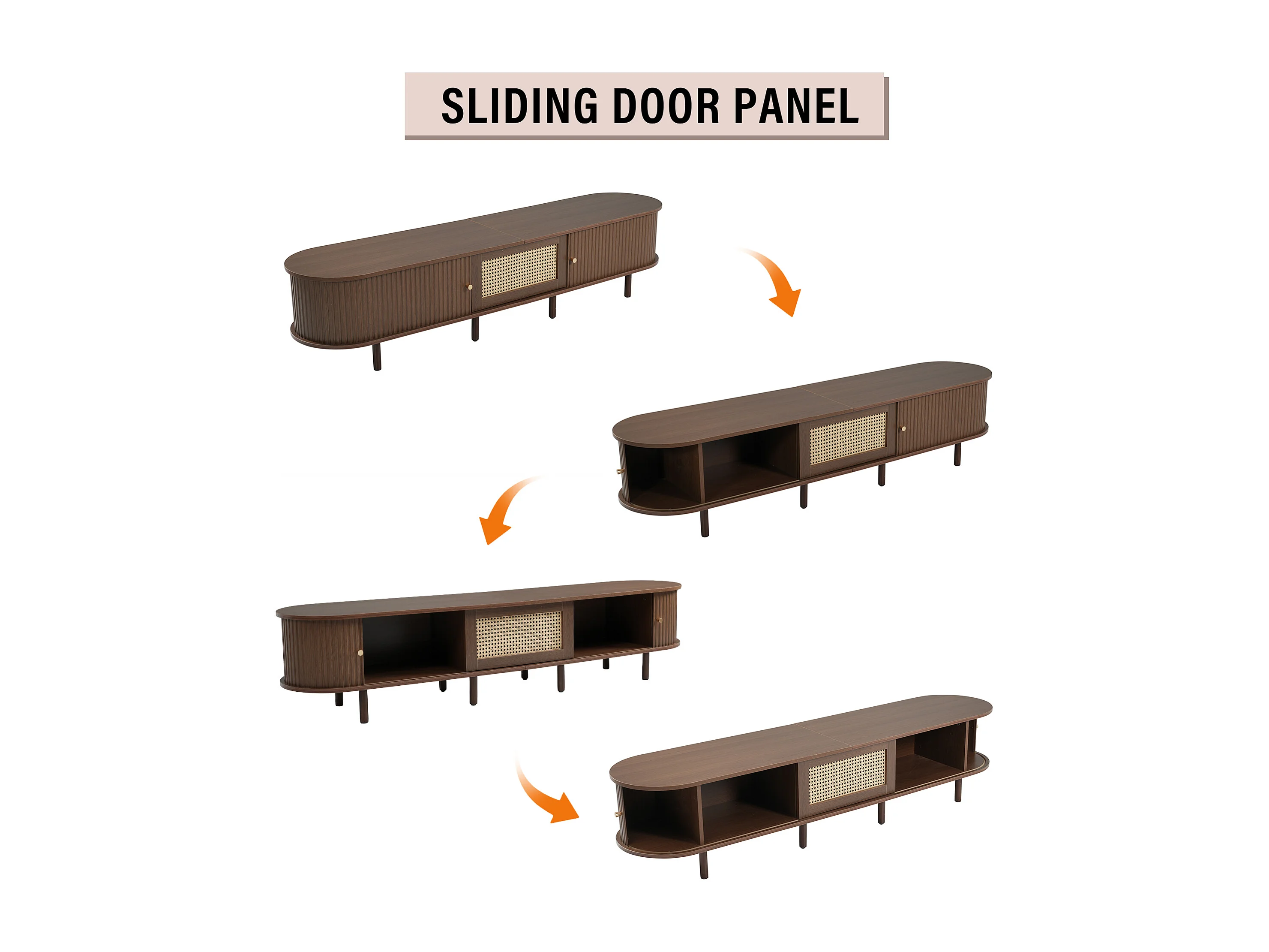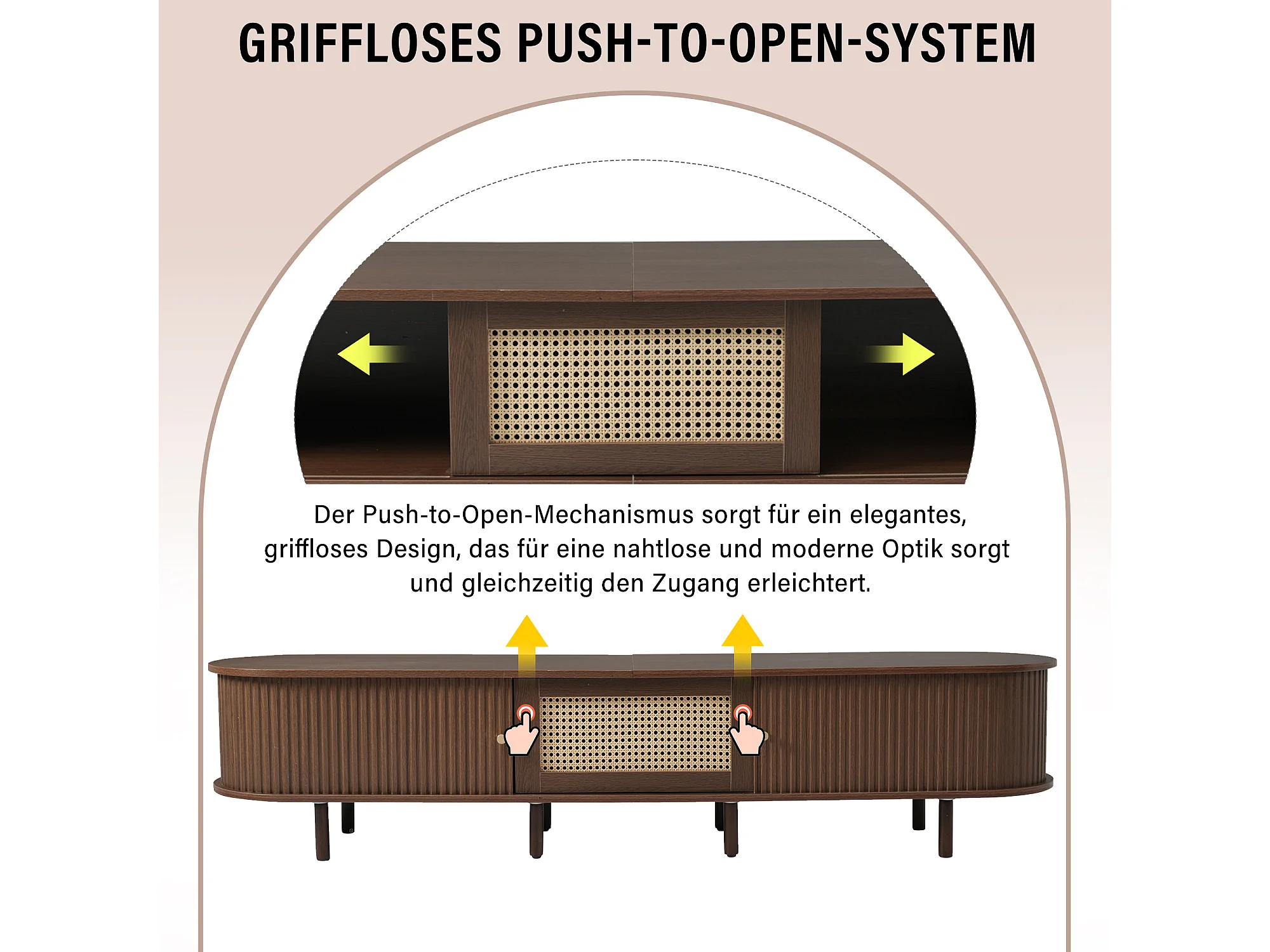 Mobile TV Noyer 180 cm Design Rotin 8 Pieds Réglables Rangement Salon