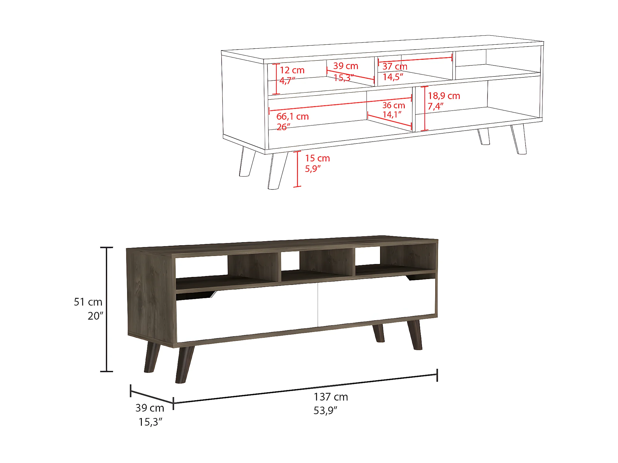 Mobile TV Oslo, con ripiano 51CM L X 137CM A X 39CM P Ghiandaia / Bianco