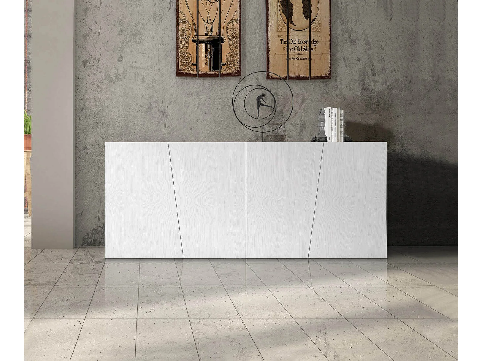 MilaniHome.it - Credenza Abete Bianco Spazzolato 185x50x84 Per Interno Sala Da Pranzo Salotto Cucina Moderno Massellodi coloreBianco