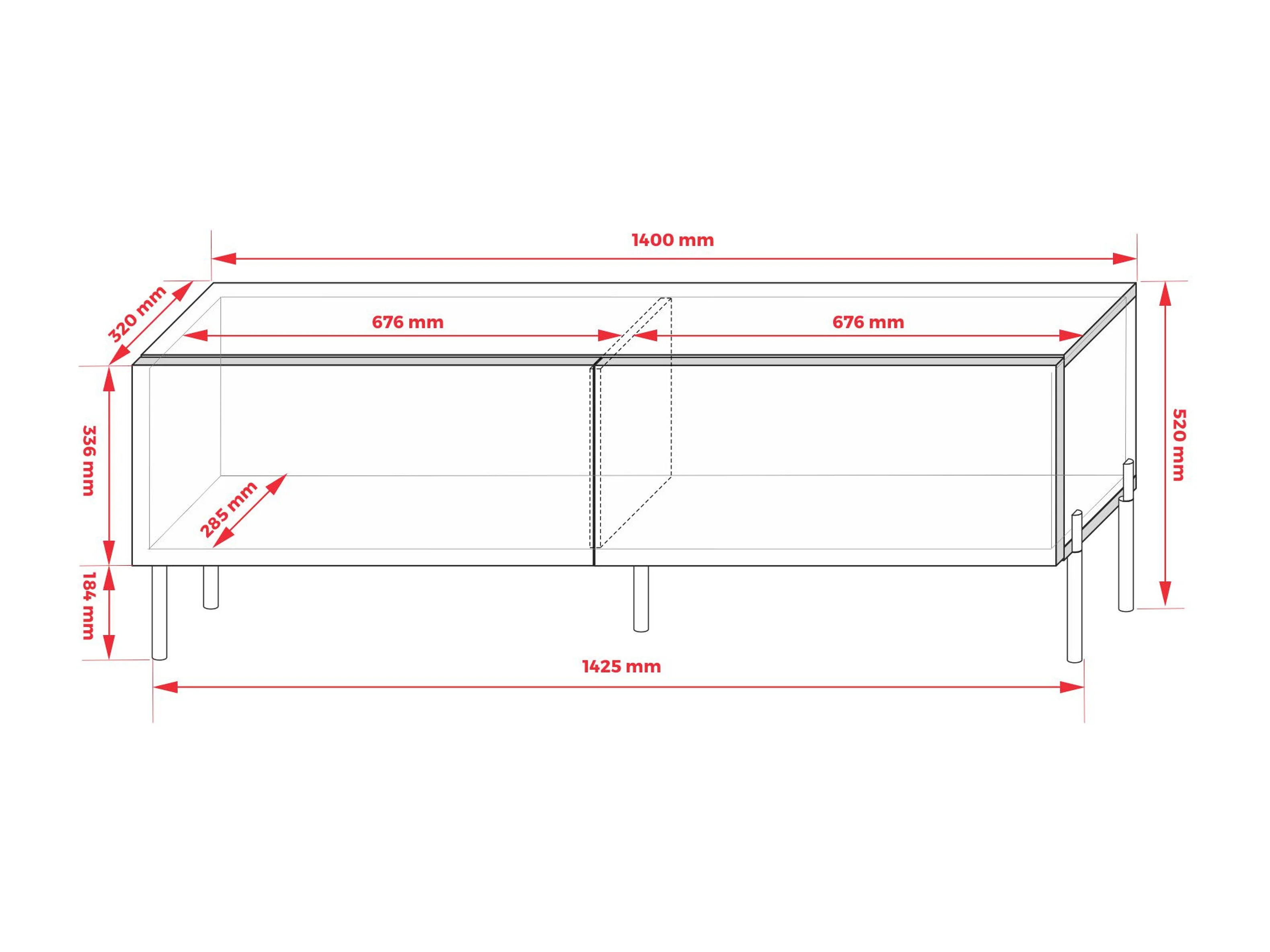 Mobile TV: rosso mattone, 140 x 52 x 32 cm, gambe dorate